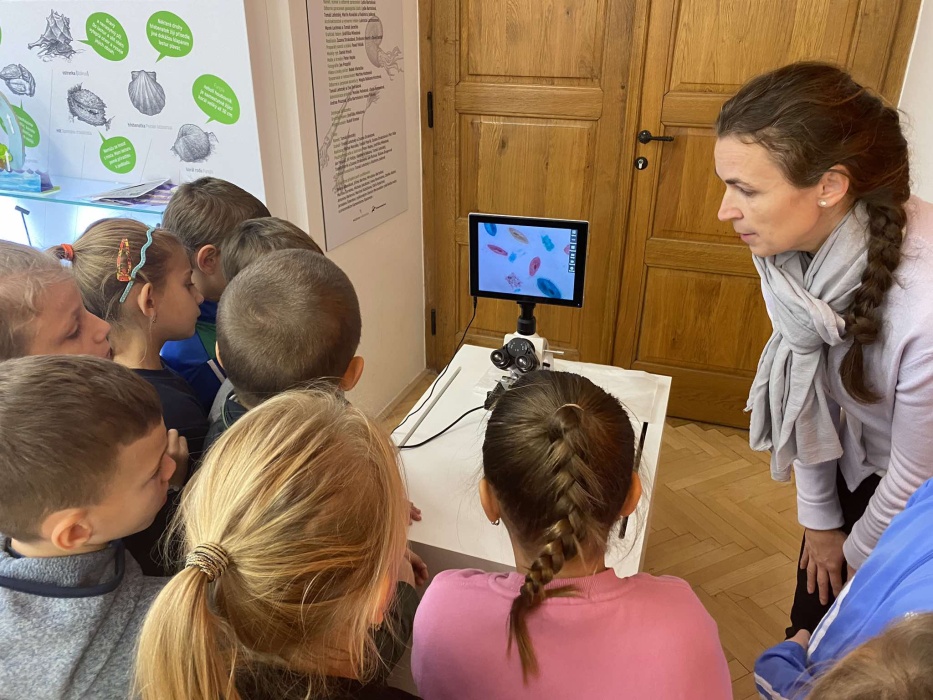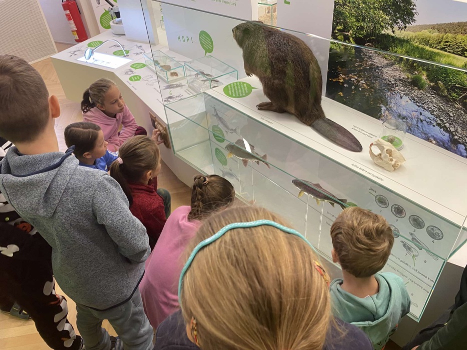 Pod vedením paní Jitky Horákové jsme měli možnost nahlédnout do prostředí vody. Součástí programu byla vycpaná zvířata, která dominovala tomuto programu, využili jsme mikroskop při hledání trepky ve vodním prostředí, prohlédli si podélný průřez rybou, vývojová stadia obojživelníků, přesvědčili se, že ptačí peří není mokré, uviděli videozáznam bobra a jeho práce ve vodě a pod vodou.