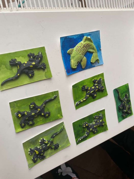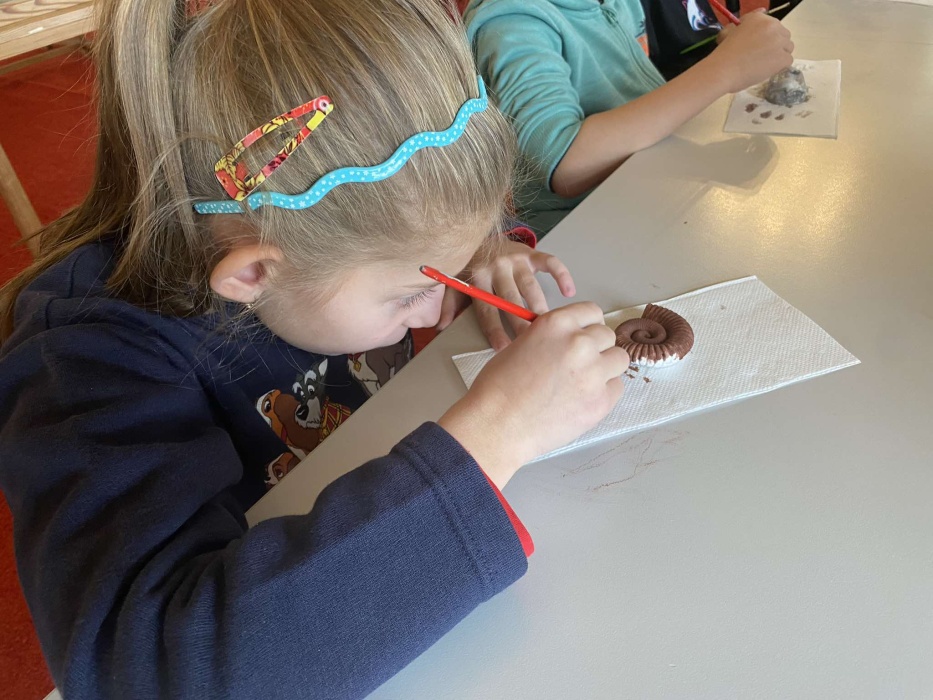 Na závěr si děti ozdobily fosilii, mloka či rybku, kterou si odnesly spolu s pracovním listem domů.