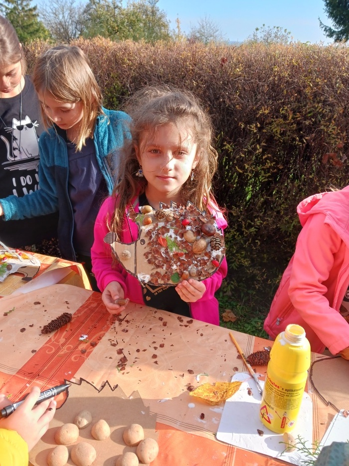 Krásně zbarvené listí a dozrávající plody podzimu využily děti školní družiny při svém tvoření. Ježek z kartonu se pod rukama dětí rychle měnil v umělecké dílo.