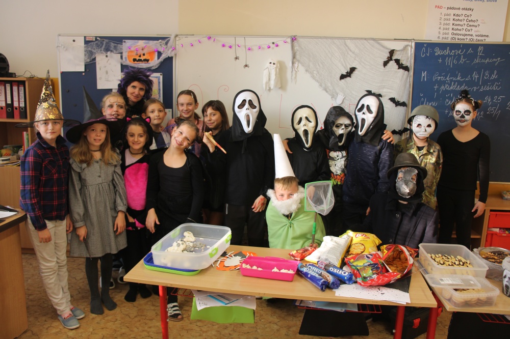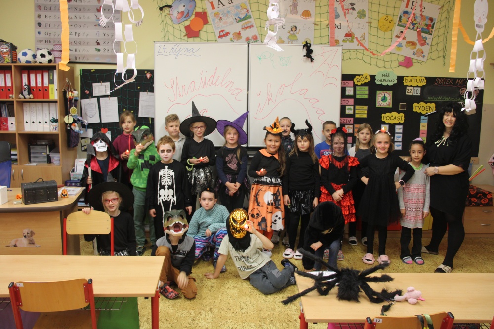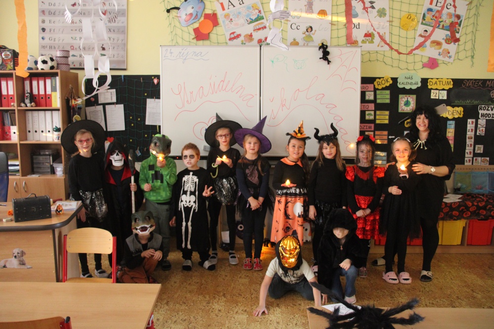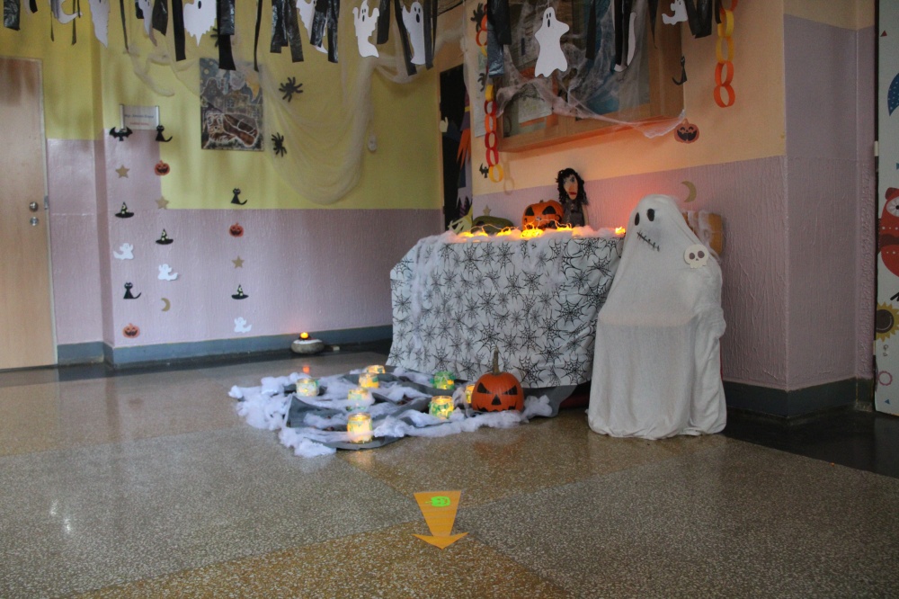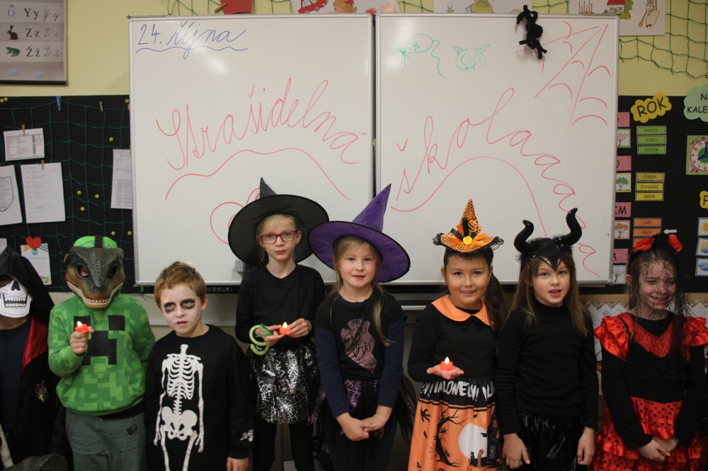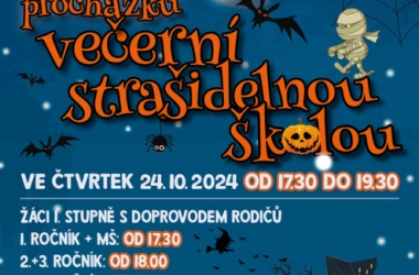 Ve čtvrtek 24. října se uskutečnila procházka strašidelnou školou. Žáci i rodiče měli možnost poznat školu zcela jinak. Po setmění vše vypuklo. Nebyla to ledajaká procházka. Děti poznávaly jednotlivá zákoutí, skládaly puzzle, obdivovaly stínohru, užívaly si prolézačky, dostávaly razítka, lovily z tajuplných sklenic, zapisovaly se u hrobu a jako památku si ulovily například plastového ducha či jiný strašidelný symbol.