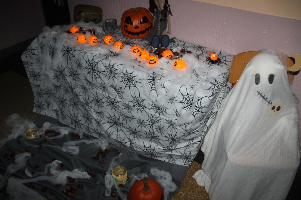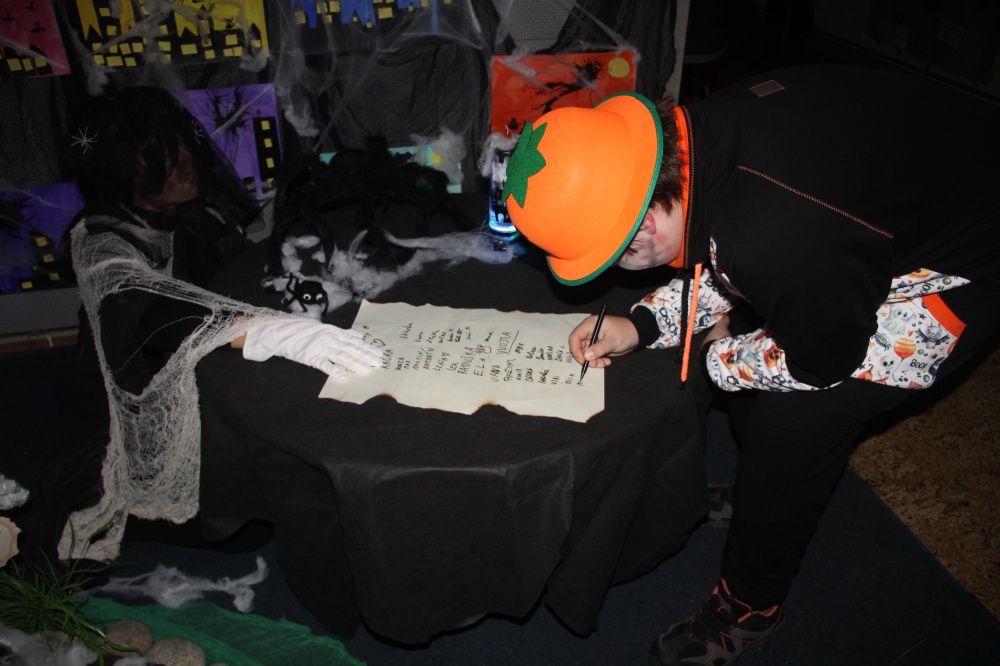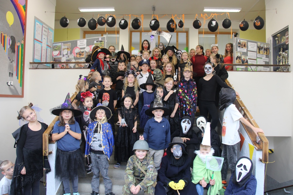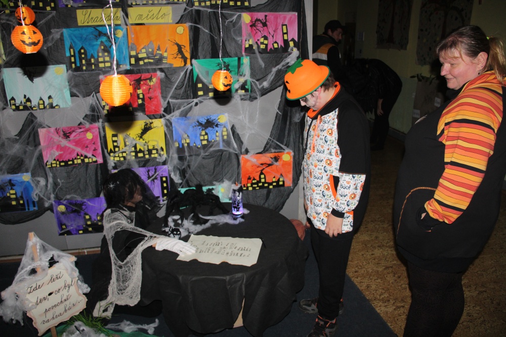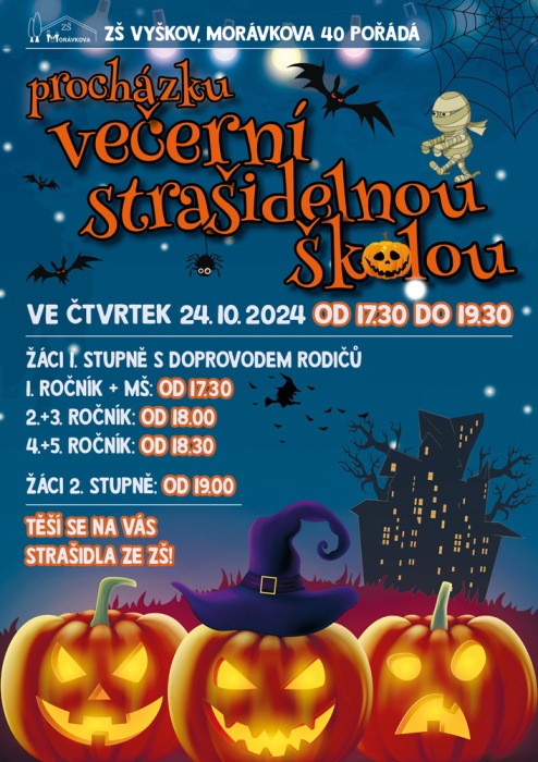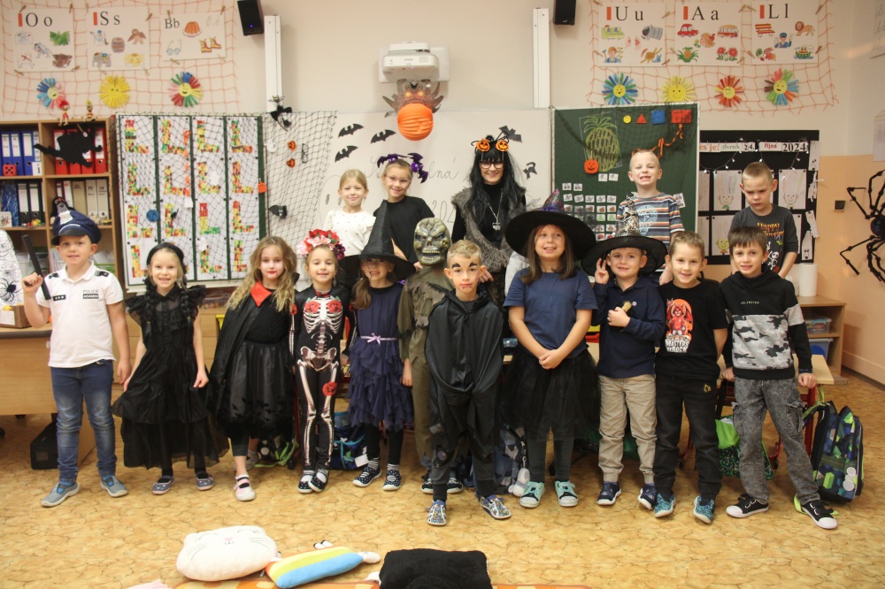 Ve čtvrtek 24. října se uskutečnila procházka strašidelnou školou. Žáci i rodiče měli možnost poznat školu zcela jinak. Po setmění vše vypuklo. Nebyla to ledajaká procházka. Děti poznávaly jednotlivá zákoutí, skládaly puzzle, obdivovaly stínohru, užívaly si prolézačky, dostávaly razítka, lovily z tajuplných sklenic, zapisovaly se u hrobu a jako památku si ulovily například plastového ducha či jiný strašidelný symbol.