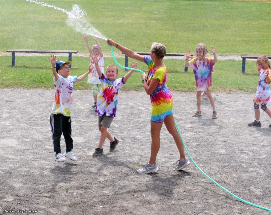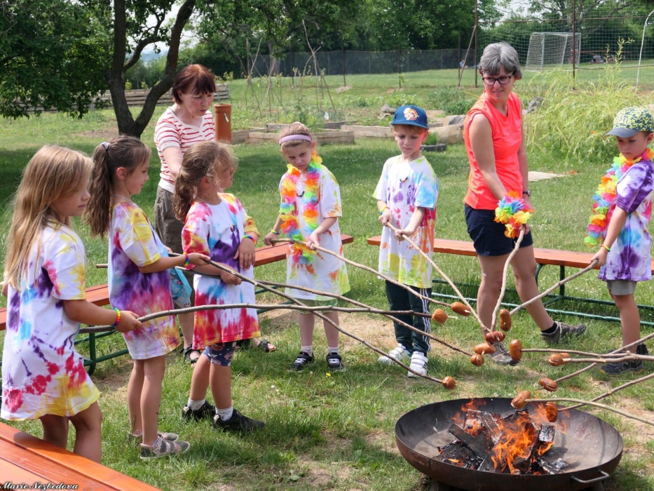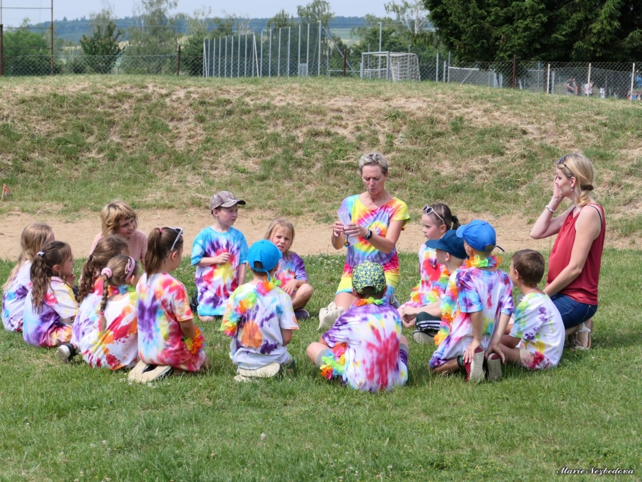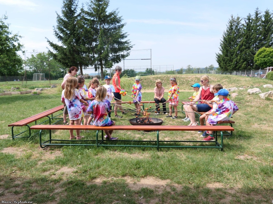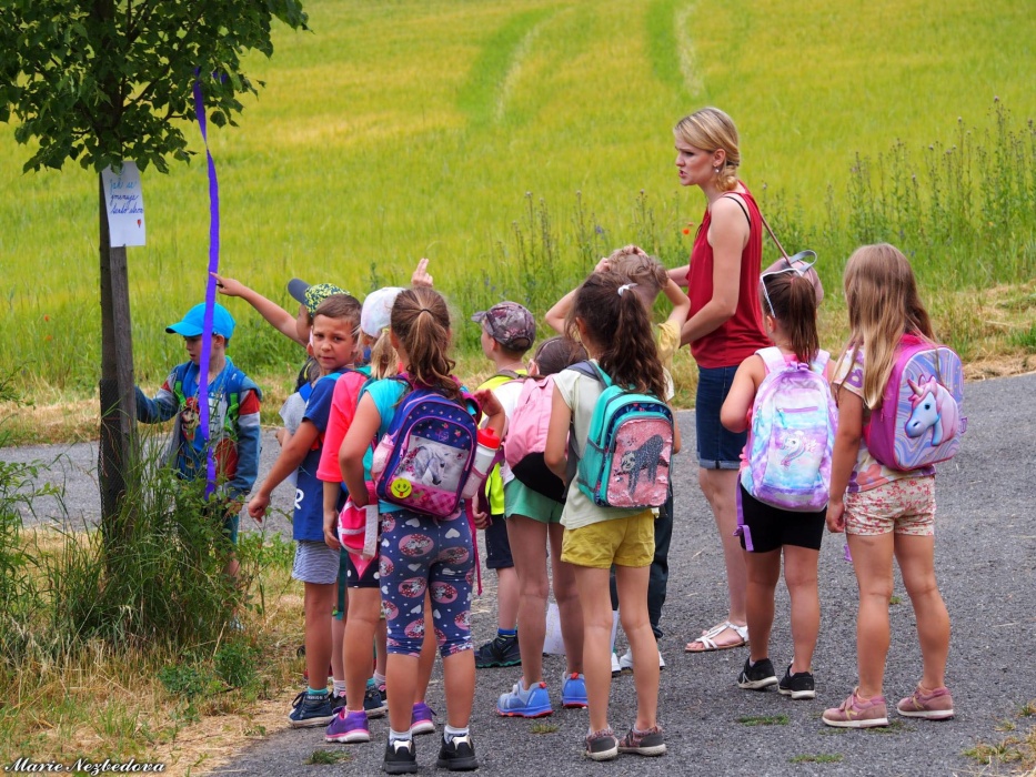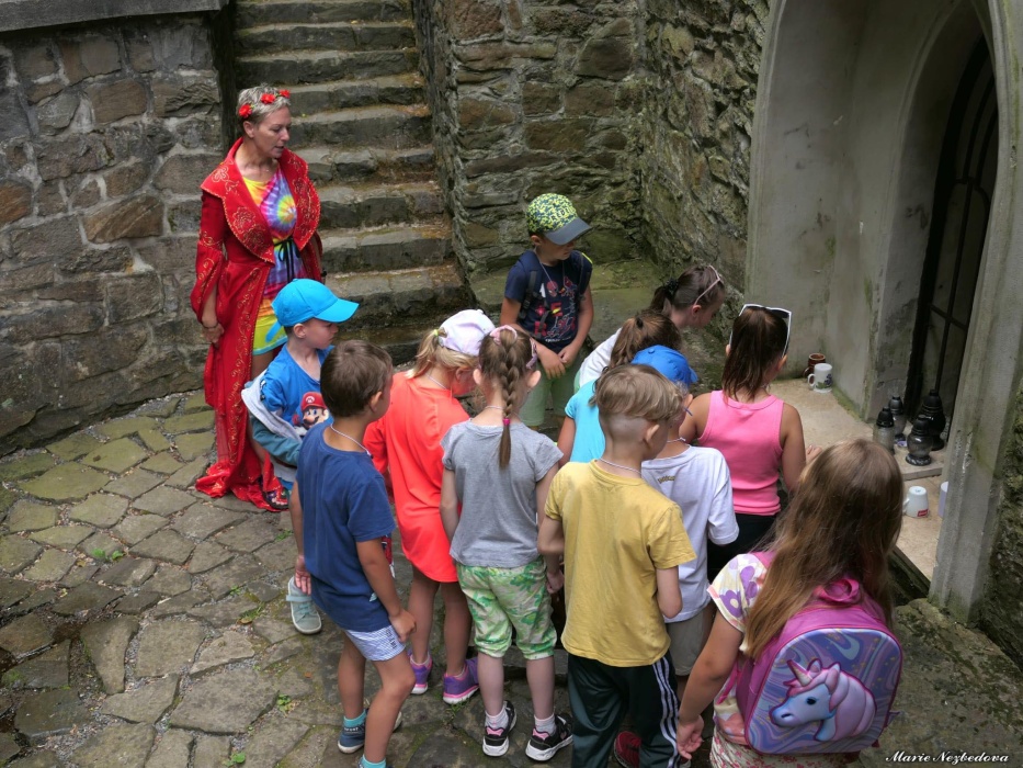 První letní den je znamením vyrazit za pokladem. A proto se děti z 1. B vydaly po stopách Kašpárka. Cestou plnily různé úkoly, až došly ke studánce Strachotince. Tam je čekala královna duhového království.