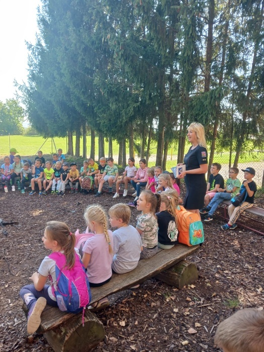 ŽIVÁ ŠKOLNÍ ZAHRADA - Školní družina pozvala PČR na besedu do zahrady