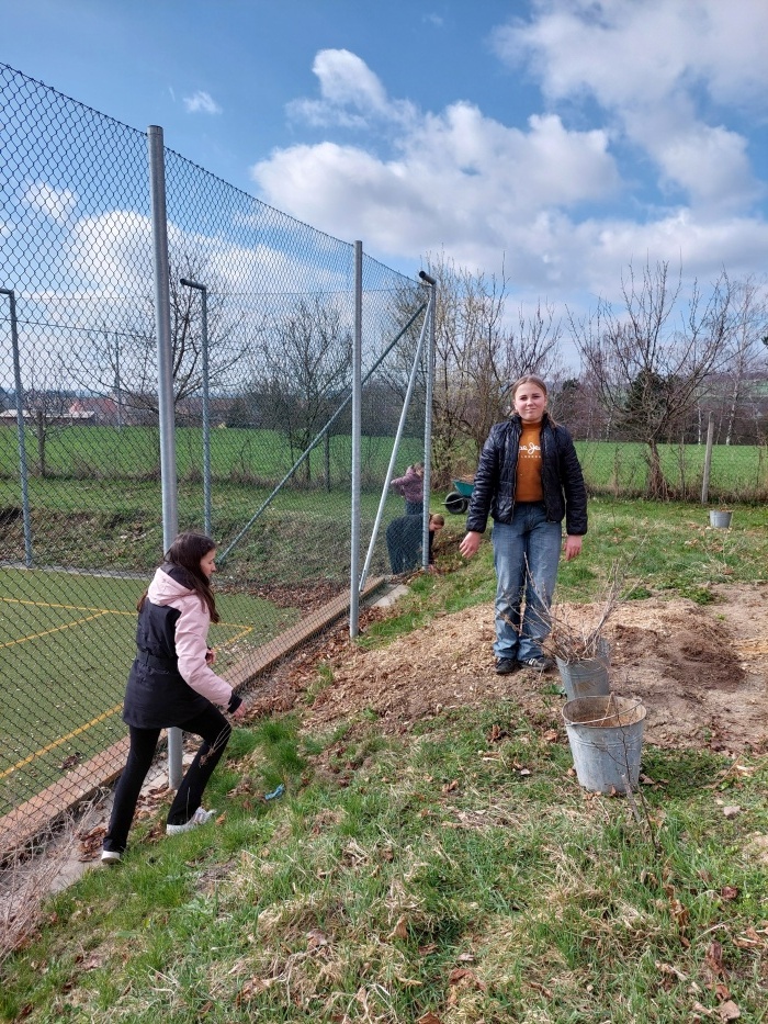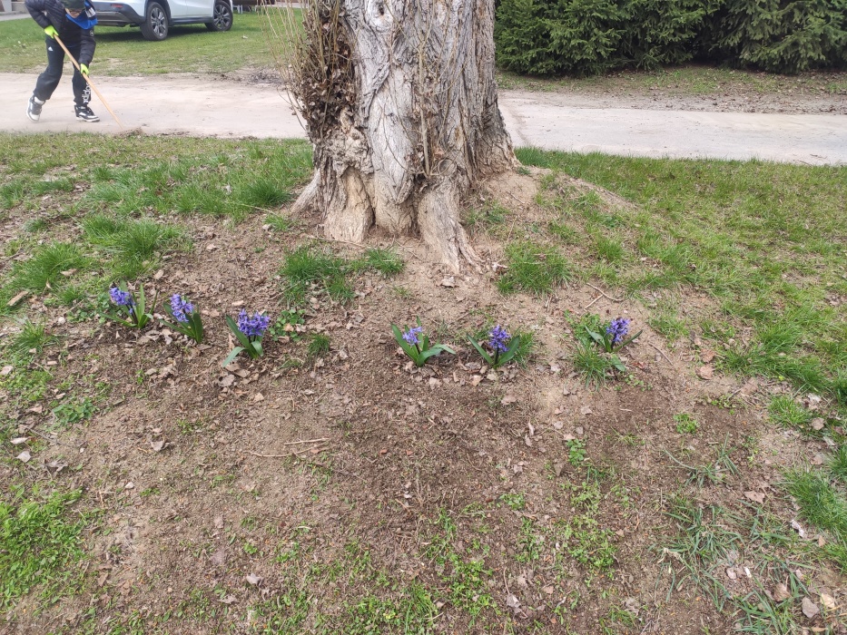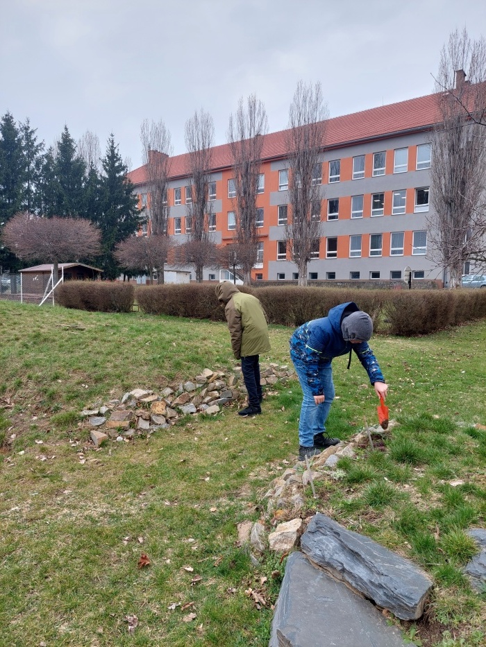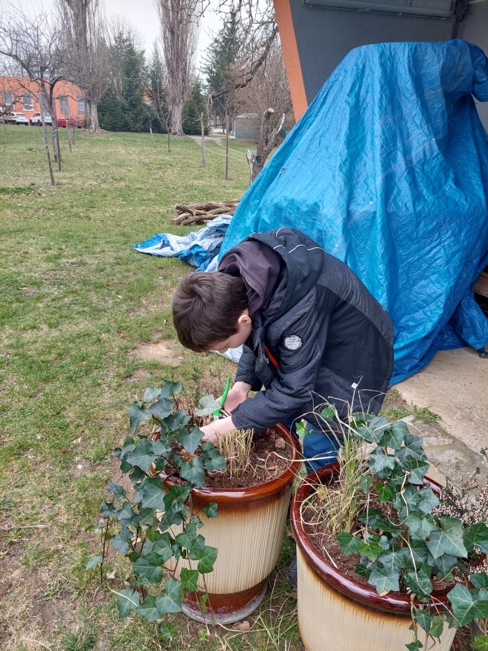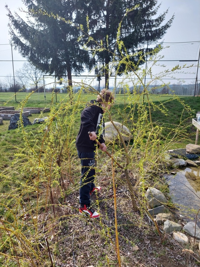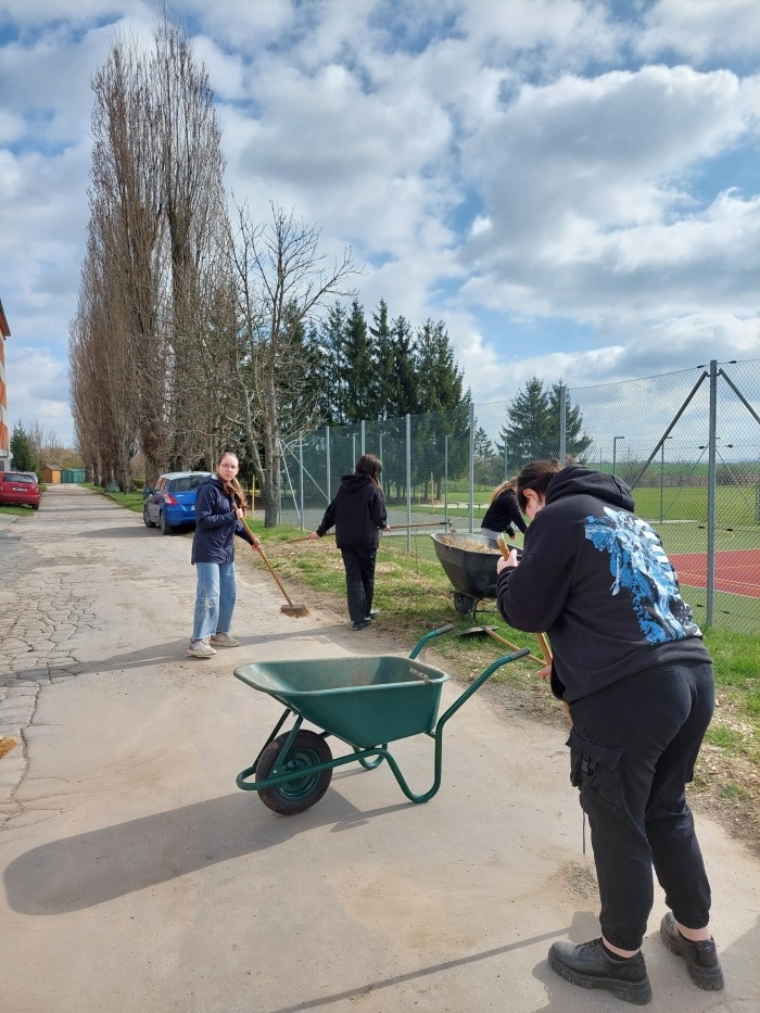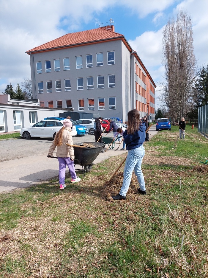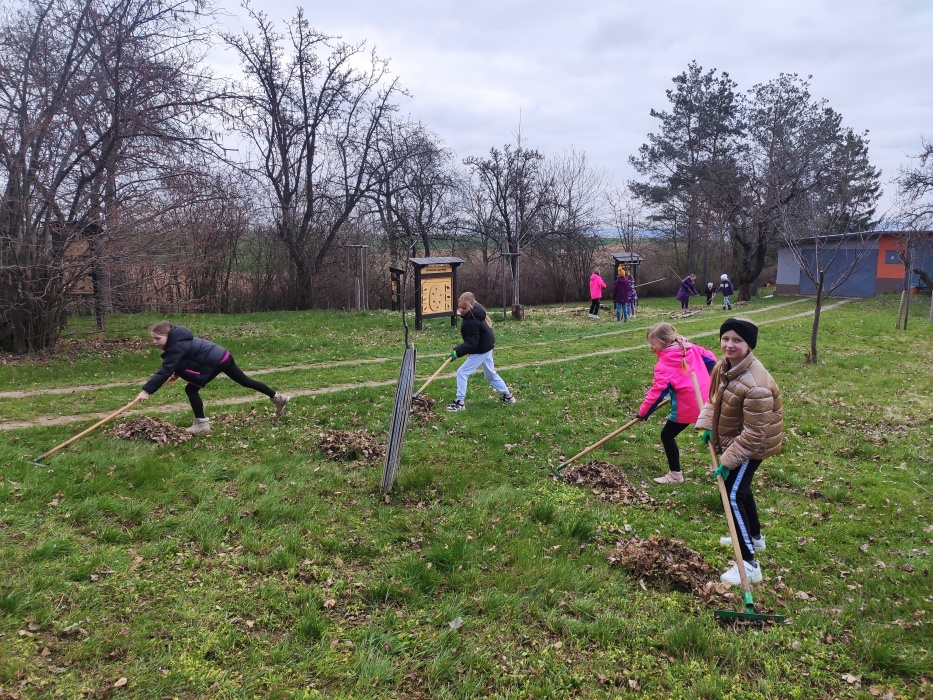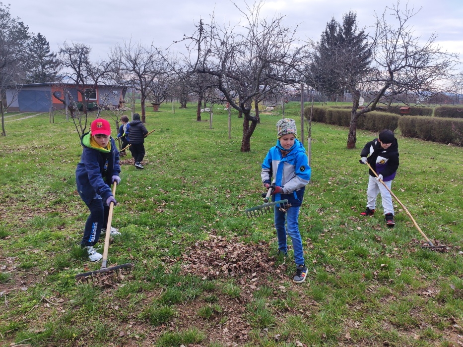 Hrabání listí a suché trávy.