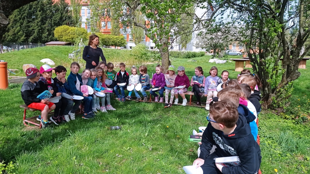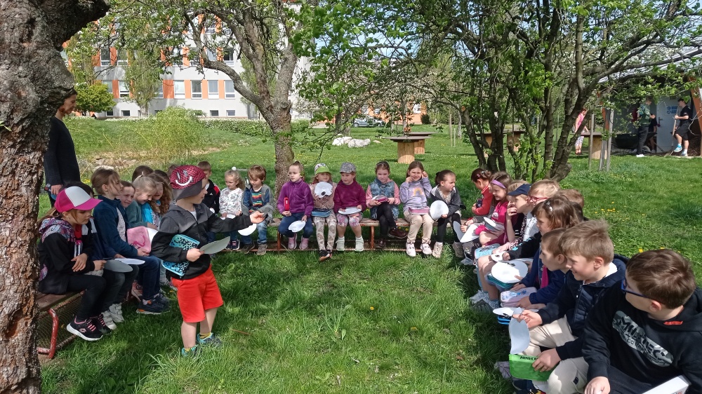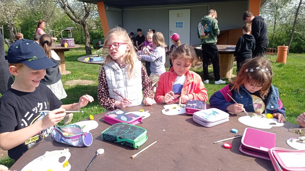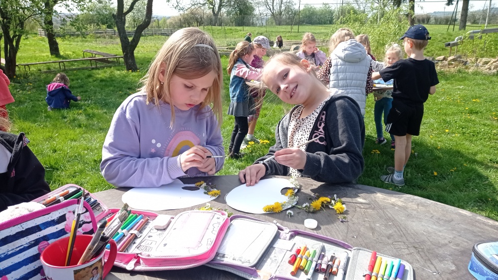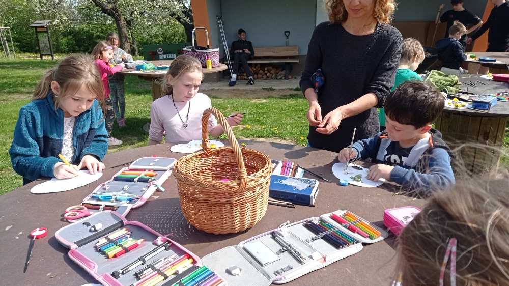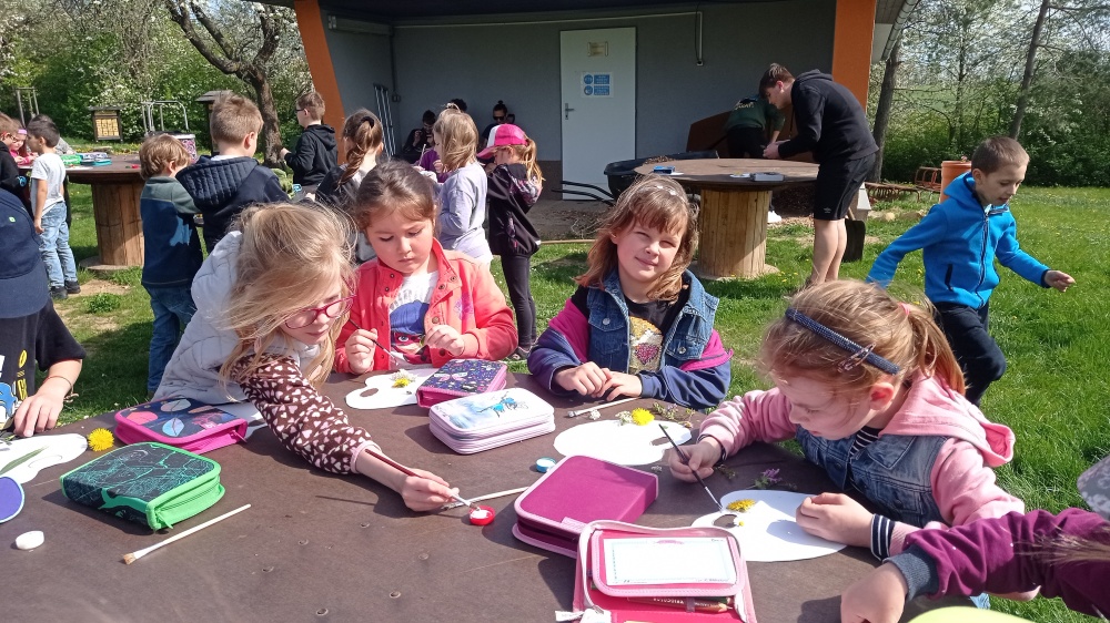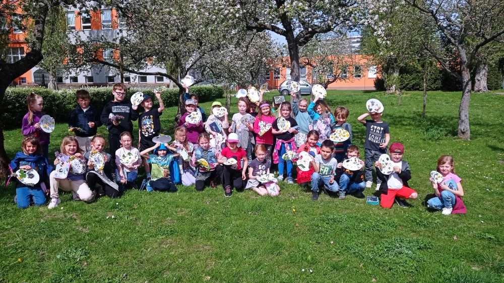 Jarní tvoření prvňáčků ve výtvarné výchově na čerstvém vzduchu těšilo všechny!