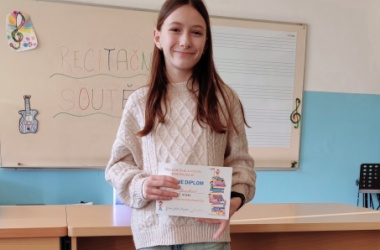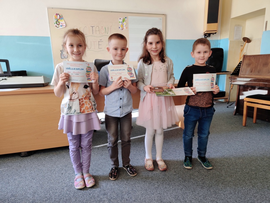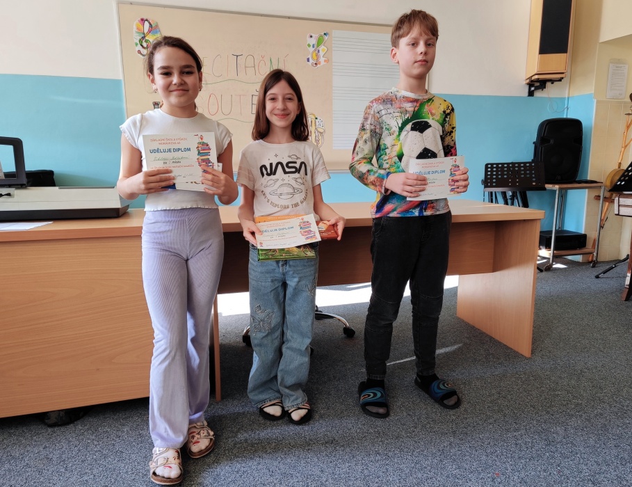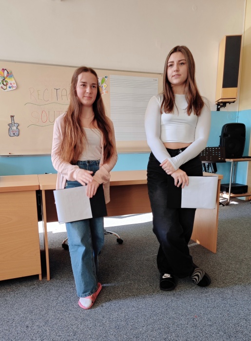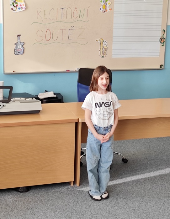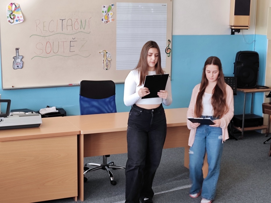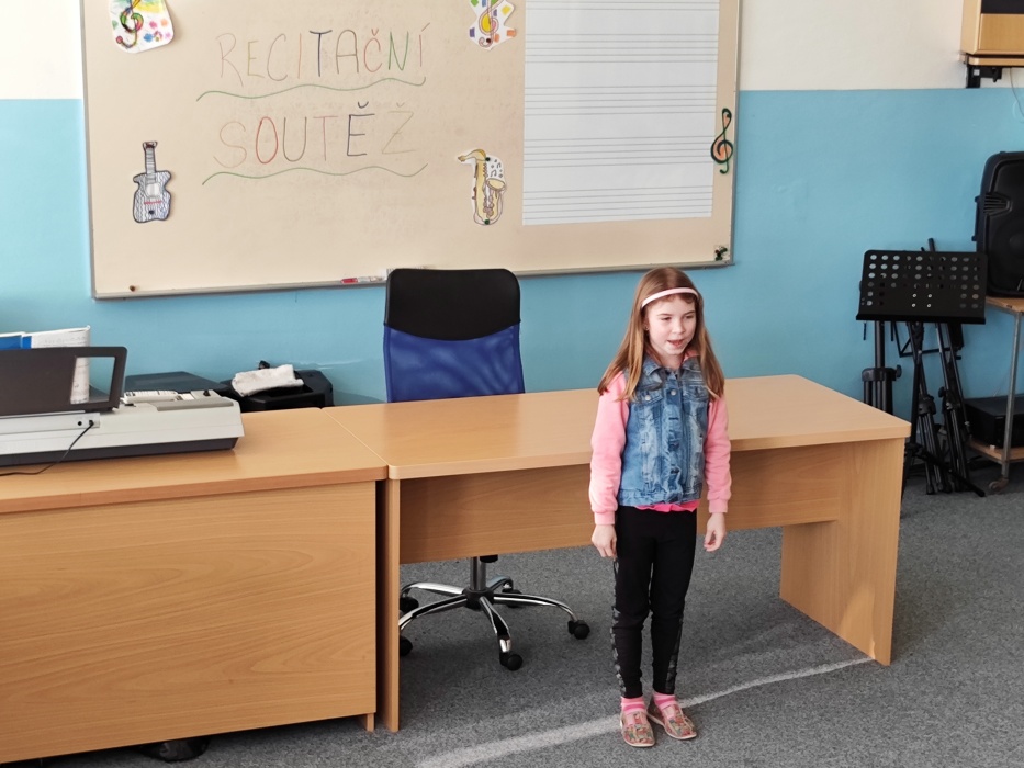 Ti, kteří rádi recitují, se sešli v hudebně školy, aby předvedli své umění. Konalo se školní kolo recitační soutěže.