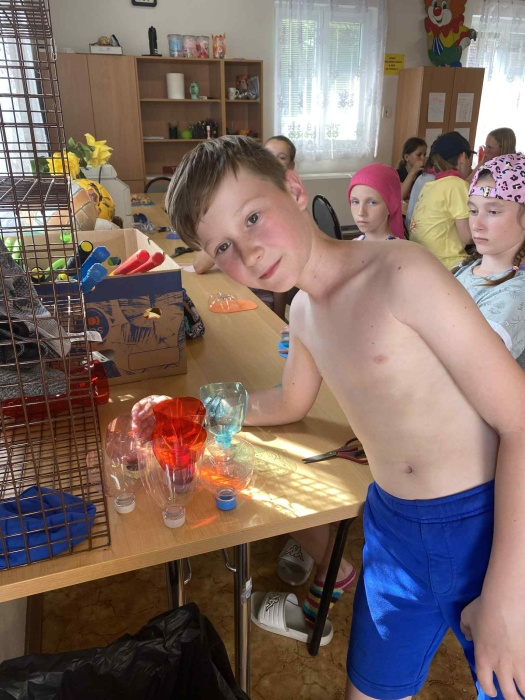 Děti si odvezly krásné výrobky, které si vlastnoručně vytvořily – originální tričko, barevnou lžičku z Fimo hmoty a nápaditou kšiltovku z PET lahve.