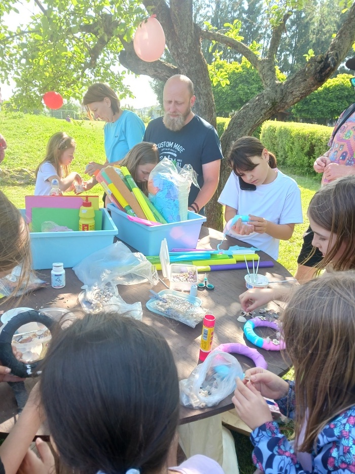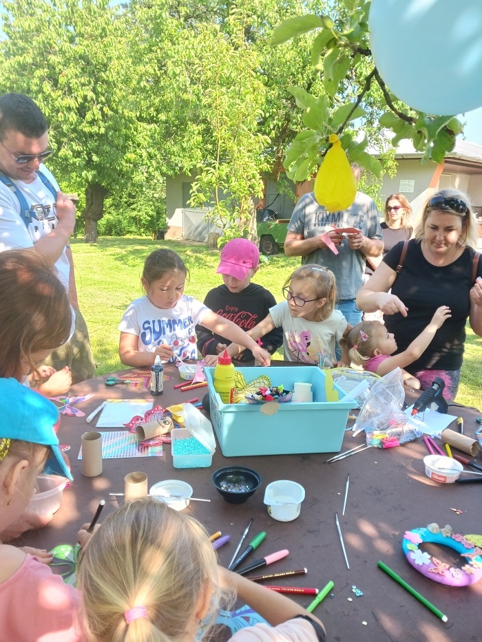 Nejprve si holky a kluci mohli zatančit, zazpívat a pobavit se za přítomnosti Toma a Míly, pro nás již známých herců pro děti. Nálada byla výborná. Šikovnost dětí se ukázala i při dílničkách, na kterých vyráběly různé dárečky. Na vše z oblohy dohlíželo sluníčko, které po celou dobu krásně hřálo. Co více si přát!