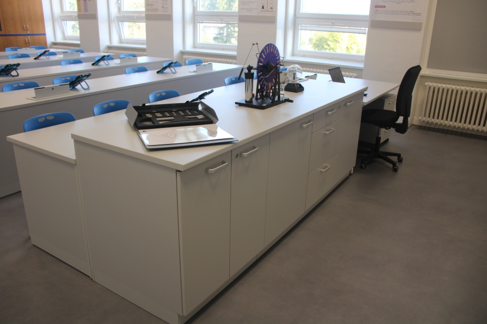Nová učebna je vybavena moderním nábytkem a speciálními pracovními stoly se zdroji elektrického napětí. Díky nim lze do výuky zapojit rozmanité přístroje a provádět pokusy přímo před žáky. Součástí modernizace je i audiovizuální technika – velkoplošná interaktivní tabule s LCD obrazovkou, která umožní promítání experimentů, videí a prezentací.