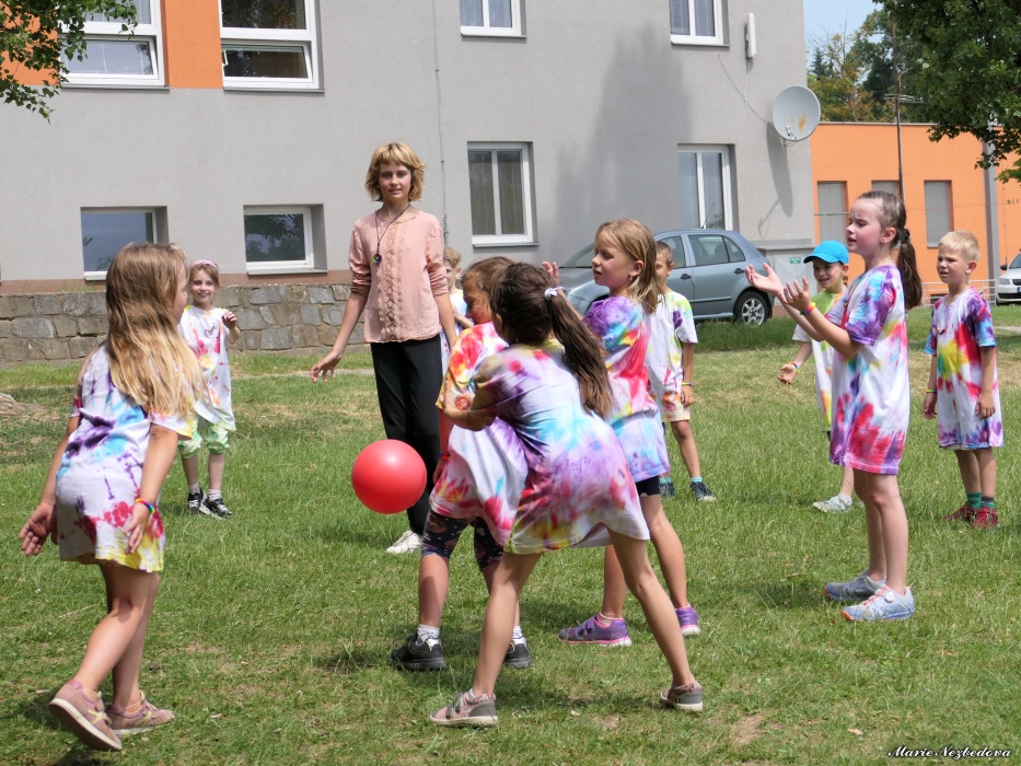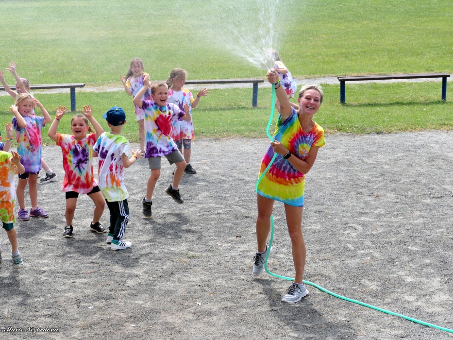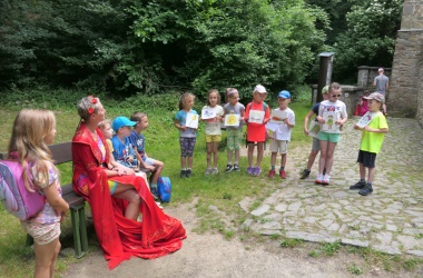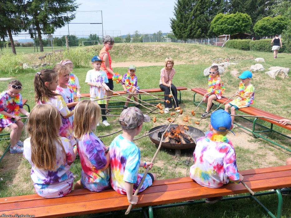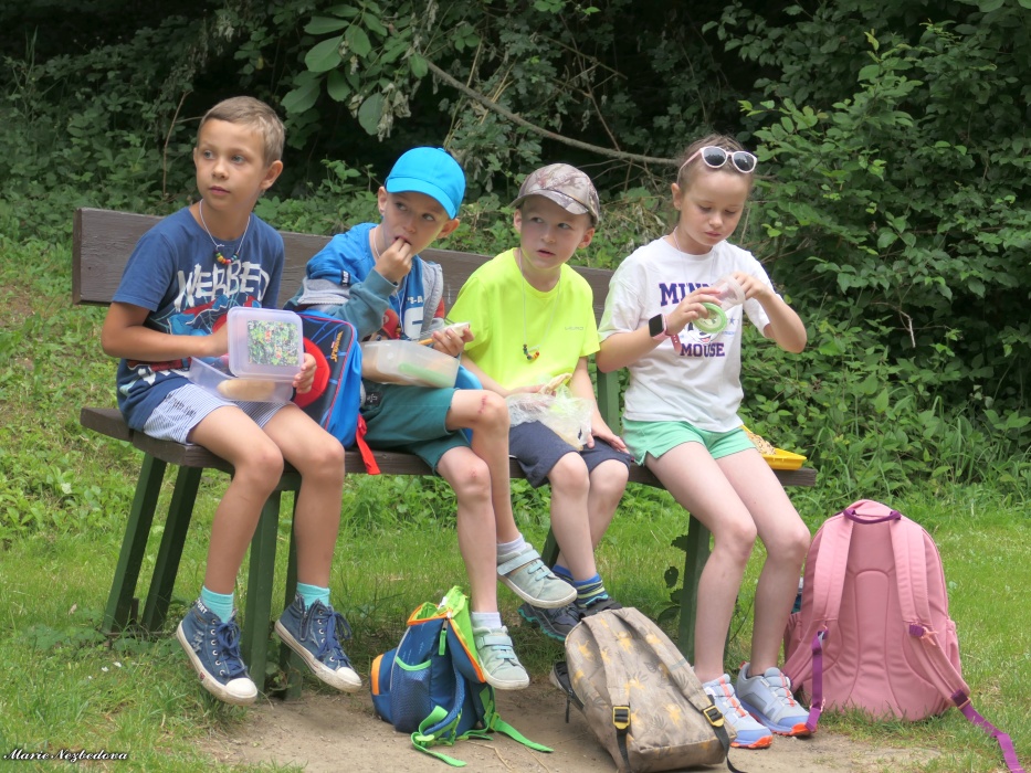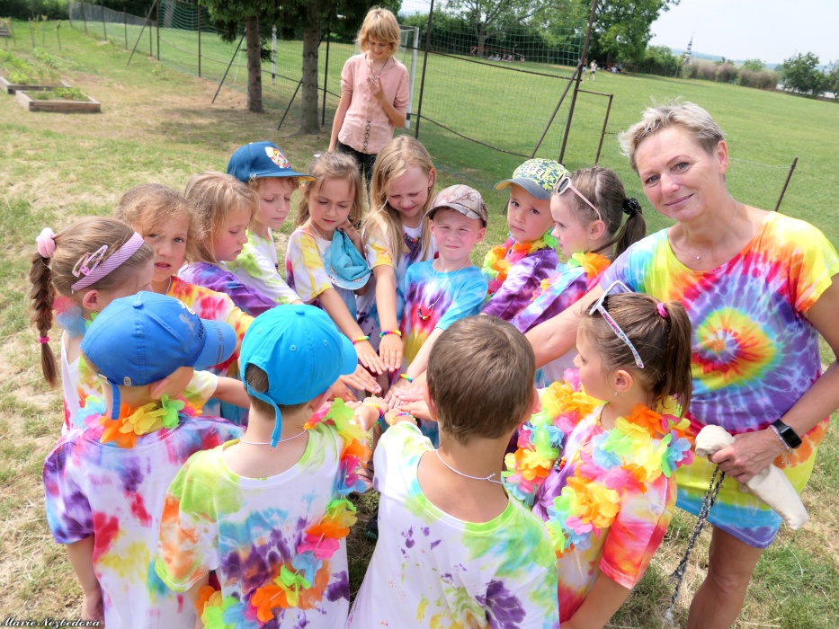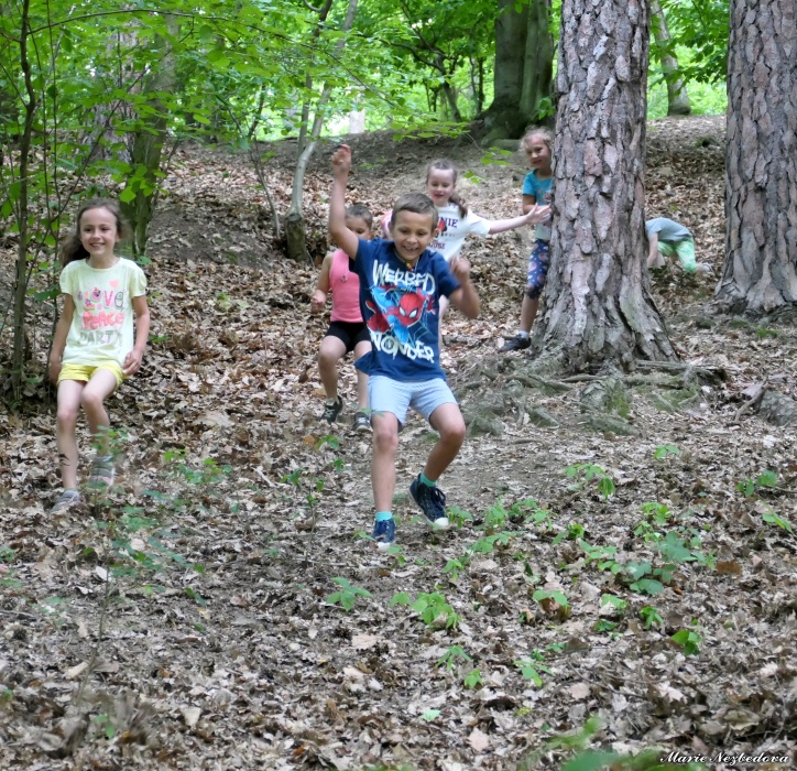 První letní den je znamením vyrazit za pokladem. A proto se děti z 1. B vydaly po stopách Kašpárka. Cestou plnily různé úkoly, až došly ke studánce Strachotince. Tam je čekala královna duhového království.