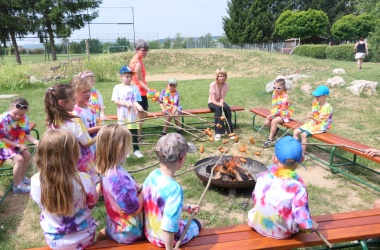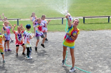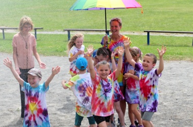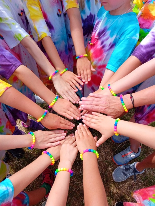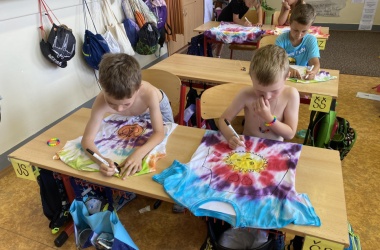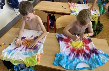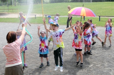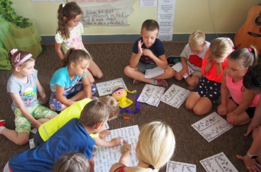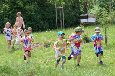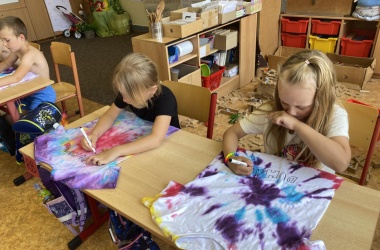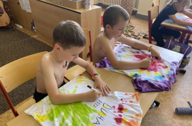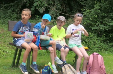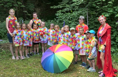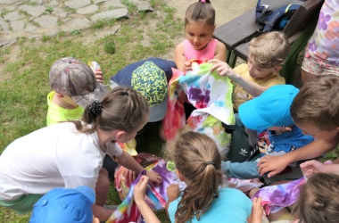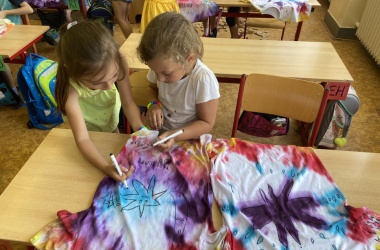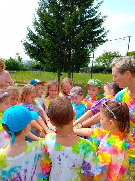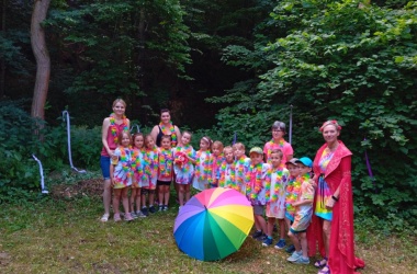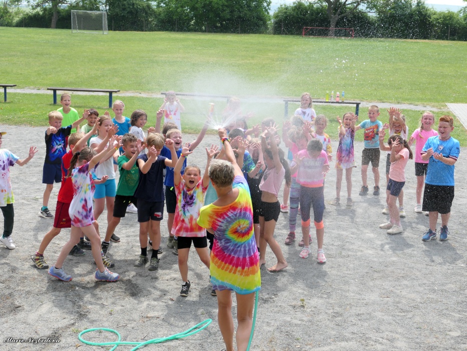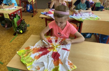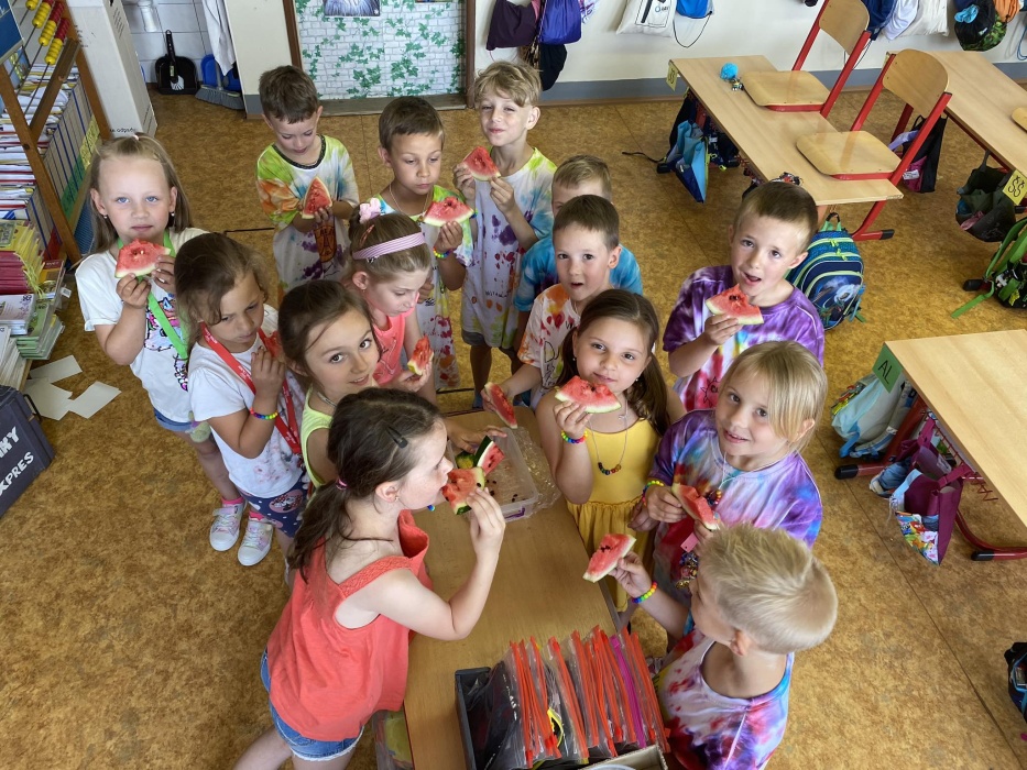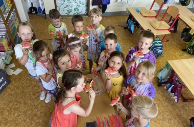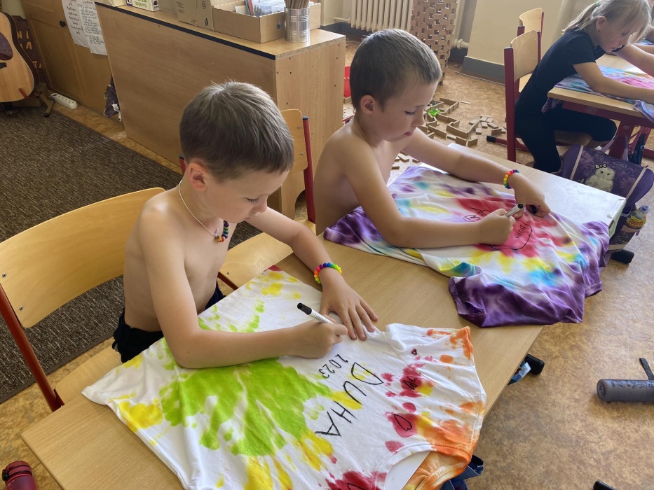 První letní den je znamením vyrazit za pokladem. A proto se děti z 1. B vydaly po stopách Kašpárka. Cestou plnily různé úkoly, až došly ke studánce Strachotince. Tam je čekala královna duhového království.