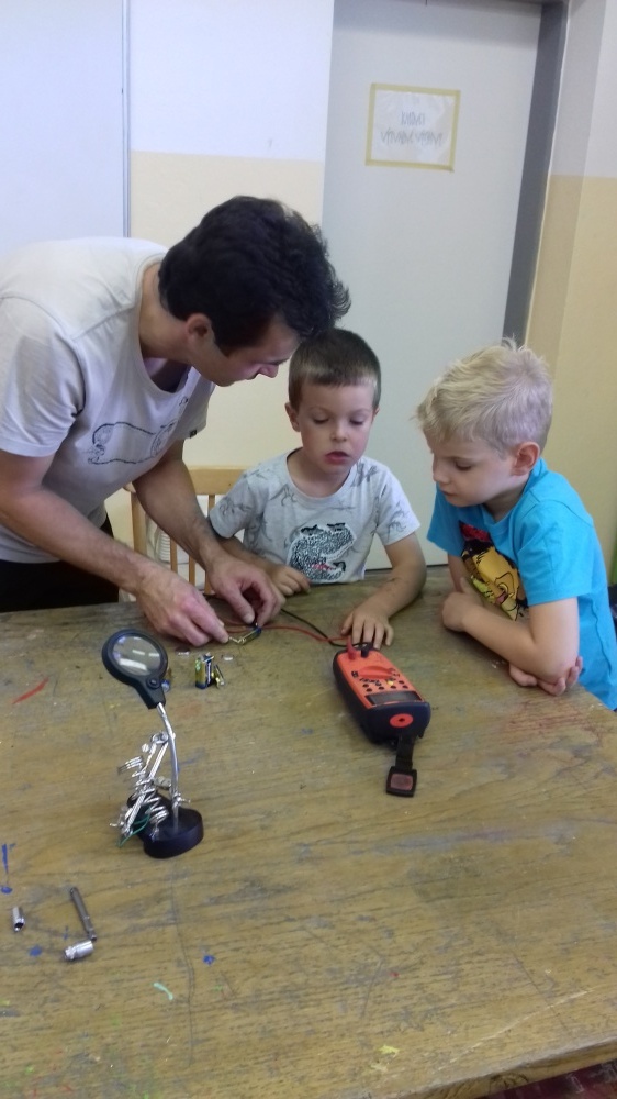 Děti navštěvující školní družinu měly možnost vyzkoušet si práci s vrtačkou, akušroubovákem, štípacími a odizolačními kleštěmi, změřit kapacitu baterií,...