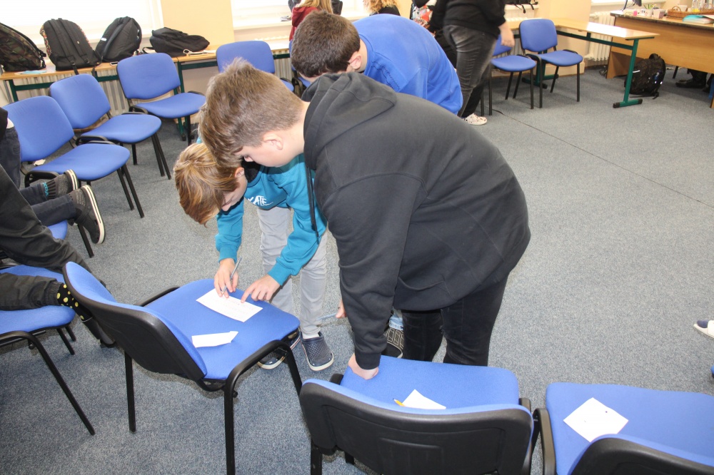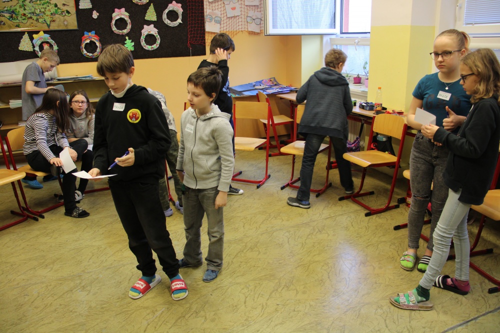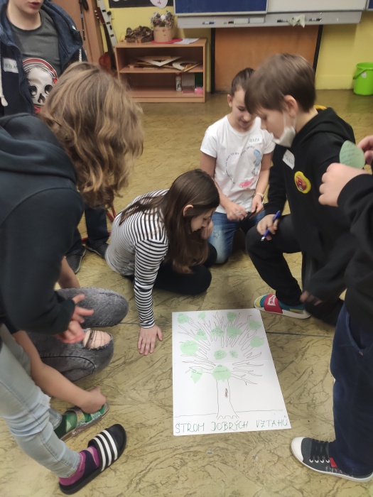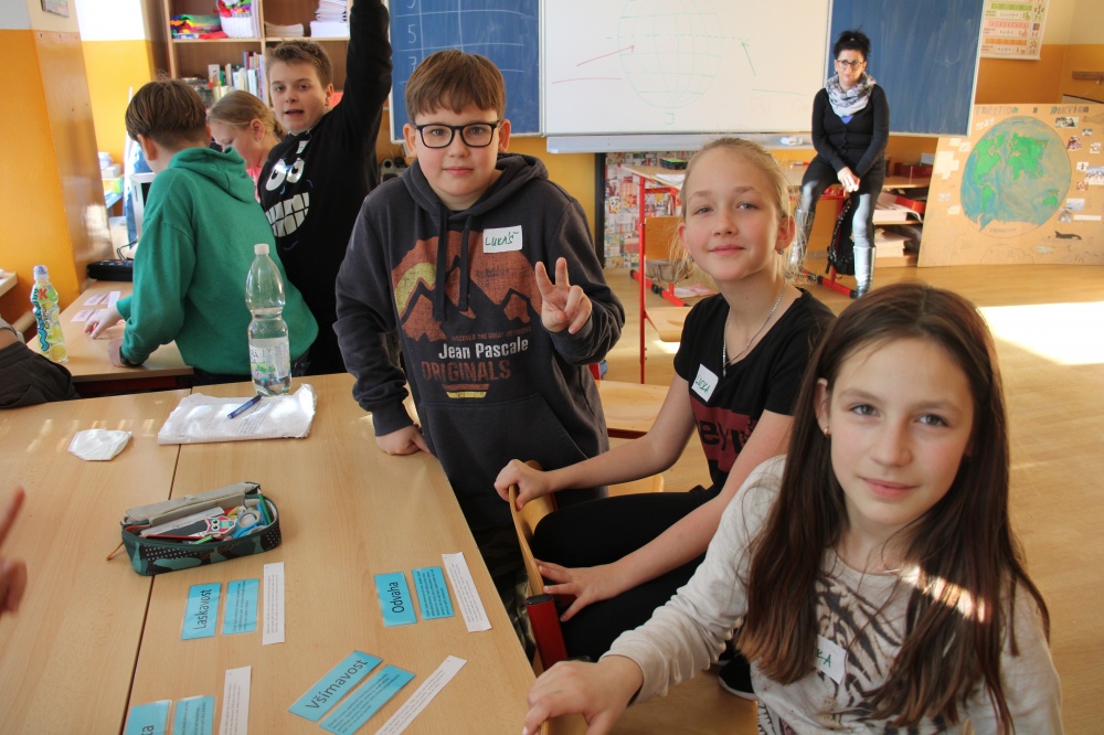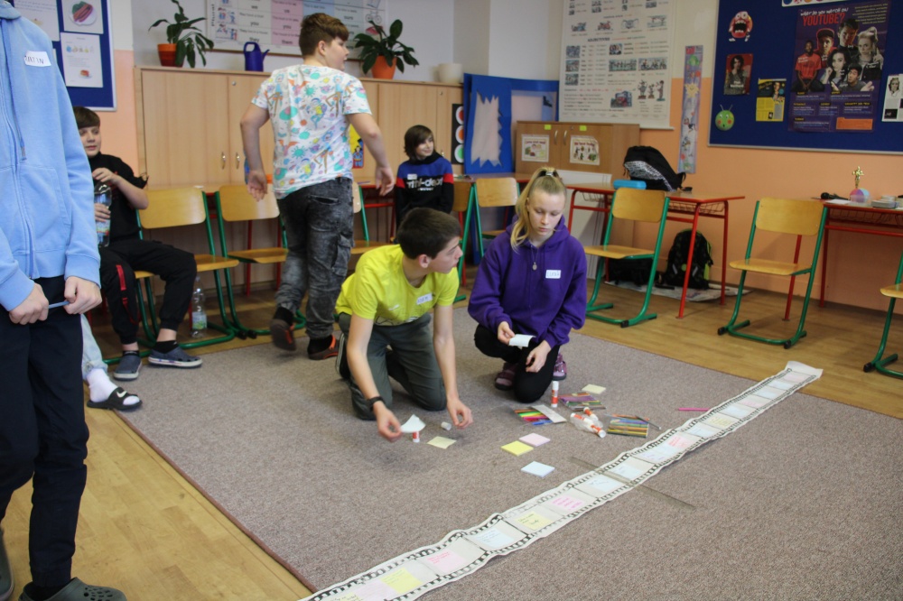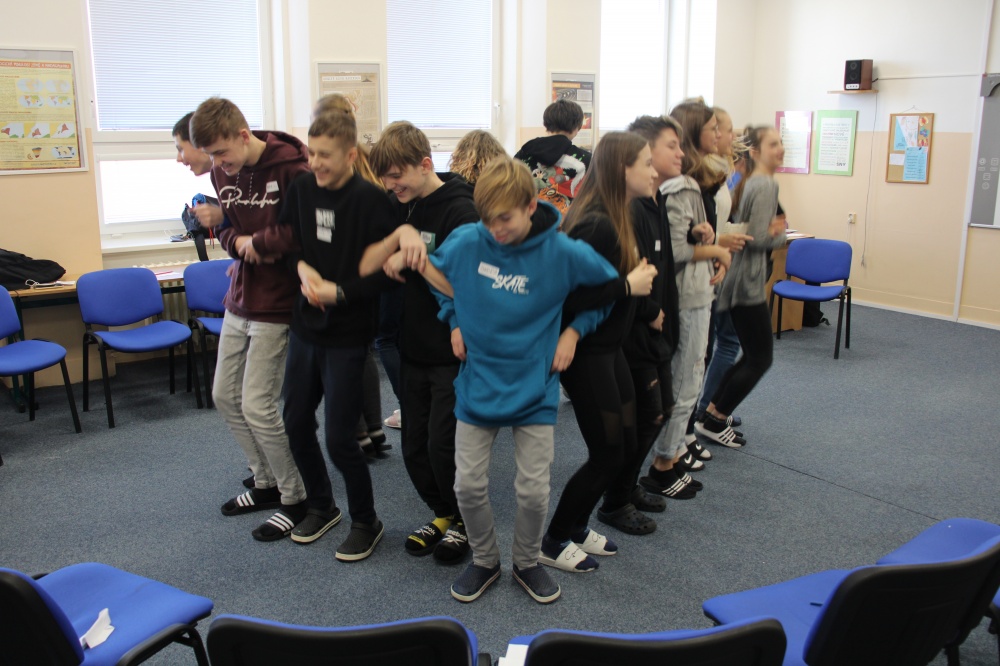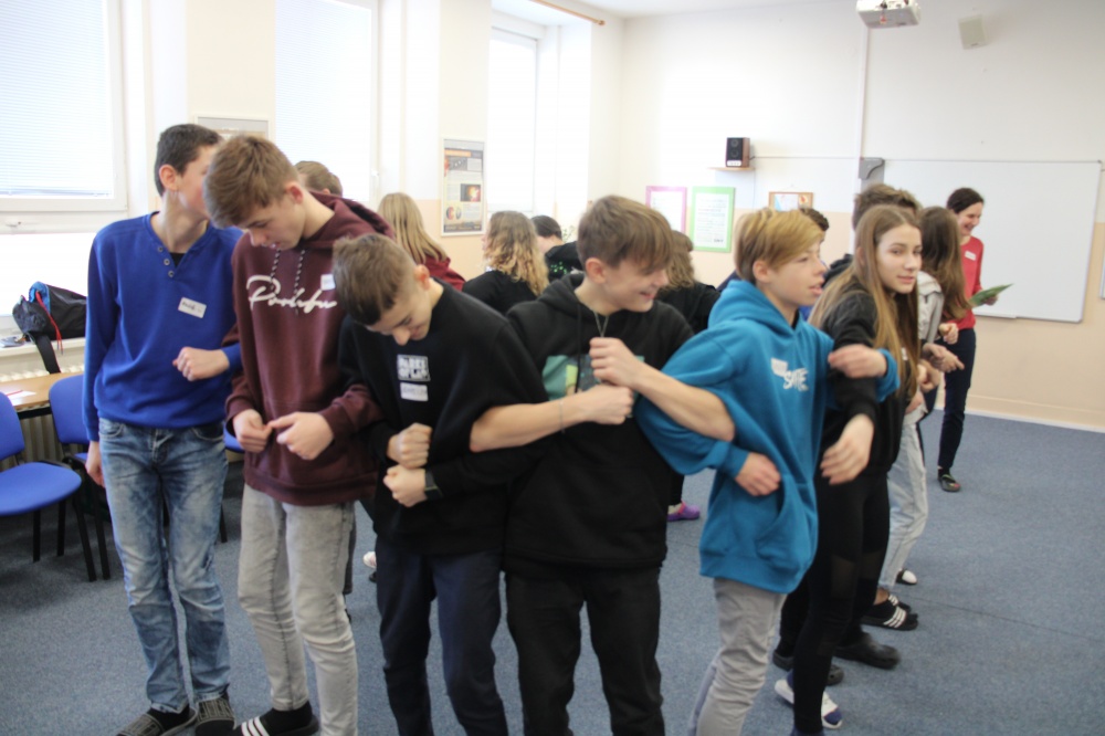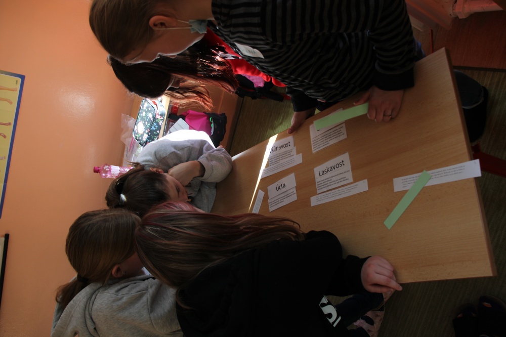 Začalo to tím, že jsme si nalepili na trička nálepky se jmény. Paní lektorka nám vyprávěla příběh o týmu, který plul na neobjevený ostrov. Poté začala první společná hra, ve které jsme se učili, co je důvěra. Ve druhé hře jsme museli naplánovat dobrou taktiku, aby náš tým v určeném čase posbíral všechny karty. I další hra byla o taktice a také o úctě, laskavosti, odvaze a všímavosti. V závěru programu se nám podařilo rozluštit šifru – odmítej zlo, čiň dobro, vyhledávej pokoj a usiluj o něj. Všechny tyto hry nás ale naučily jedno – pracovat jako tým a vždy táhnout za jeden provaz.
