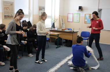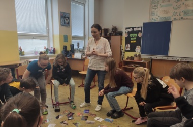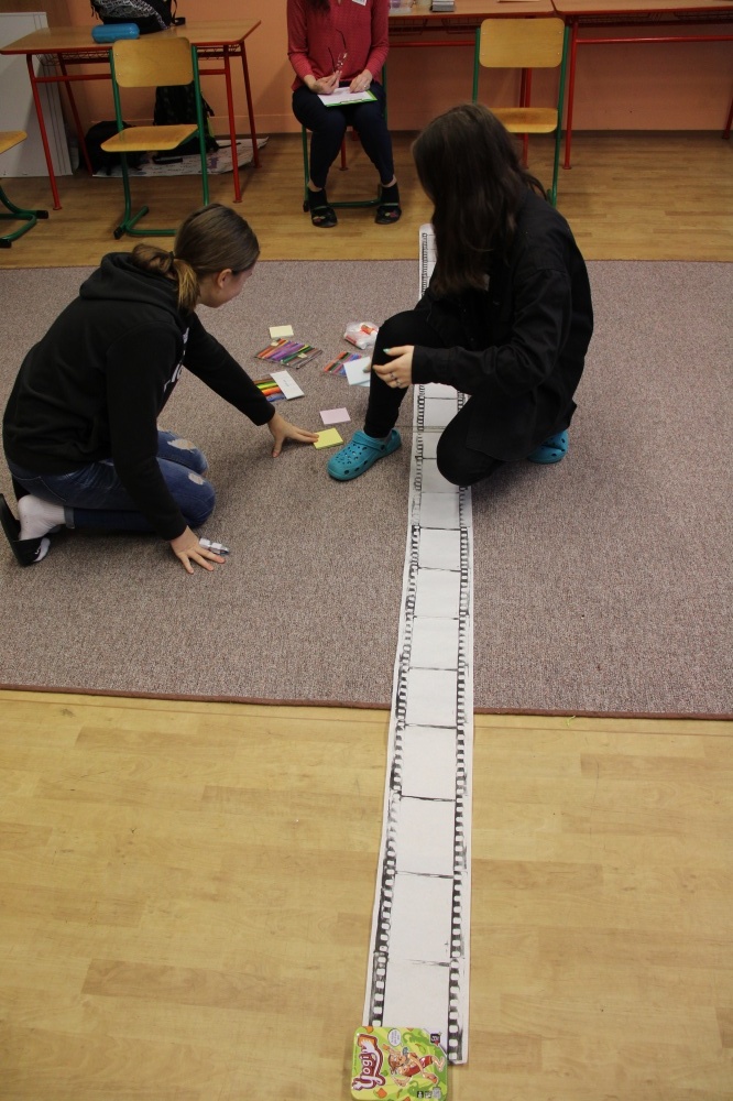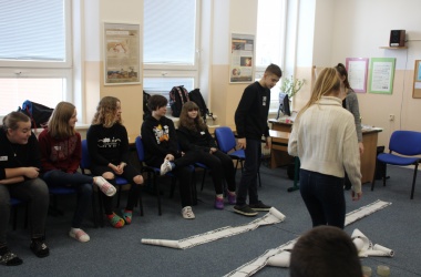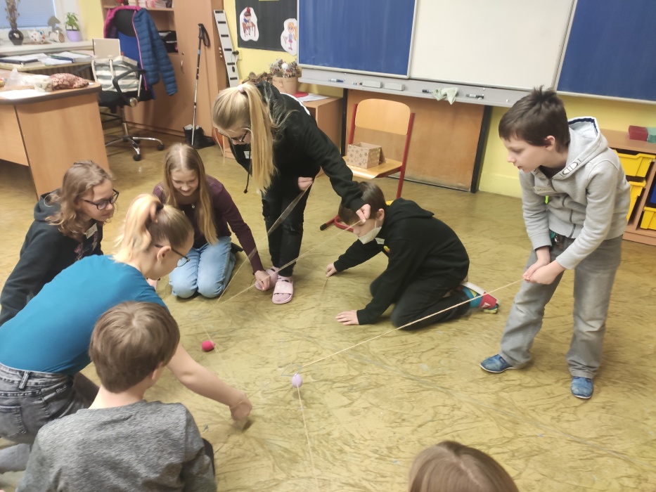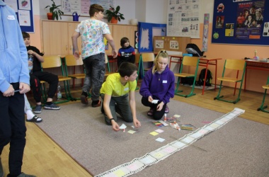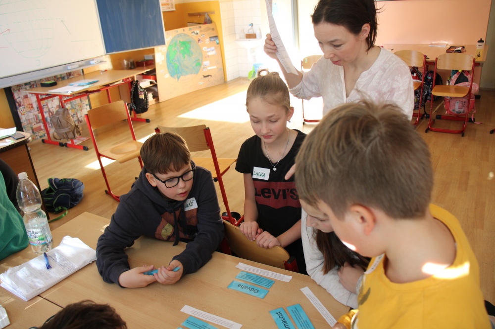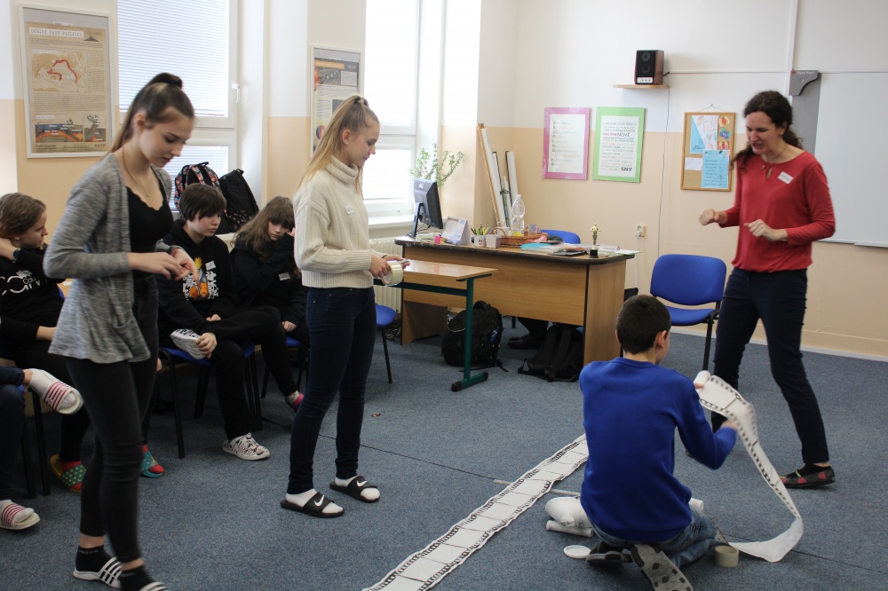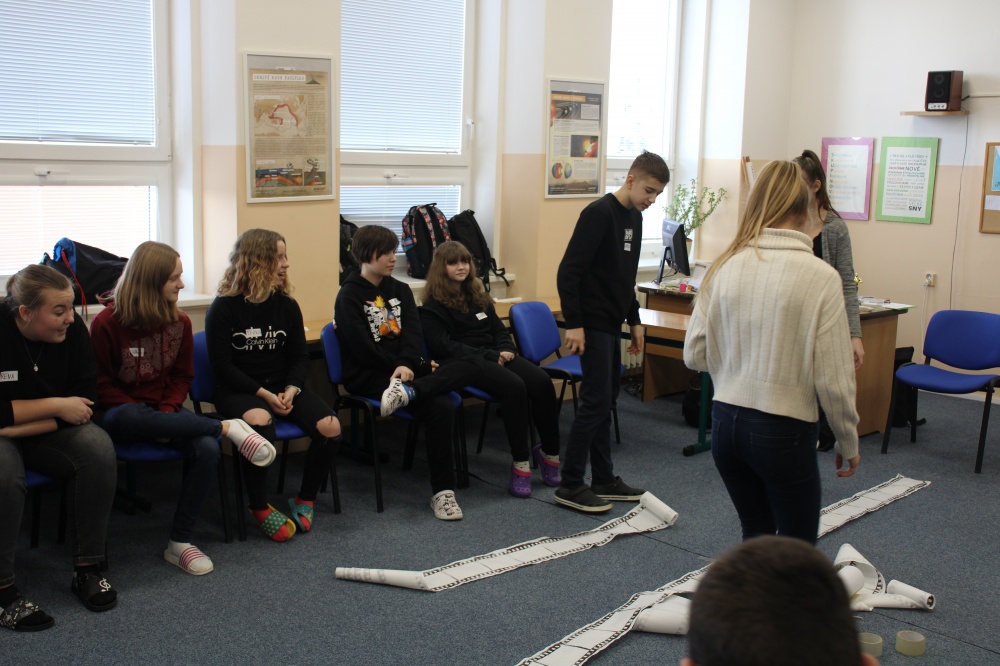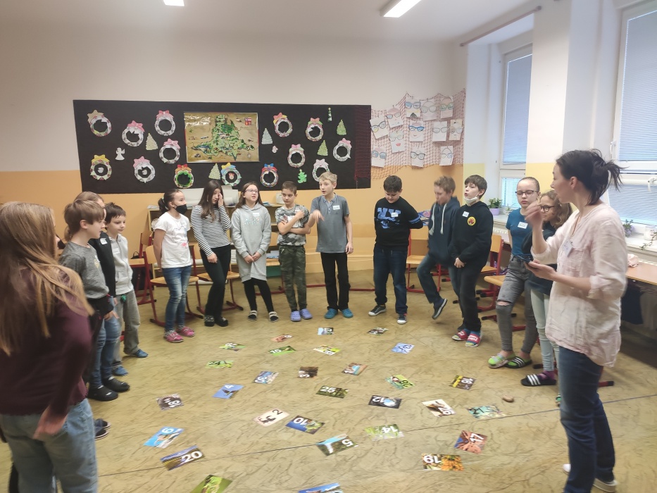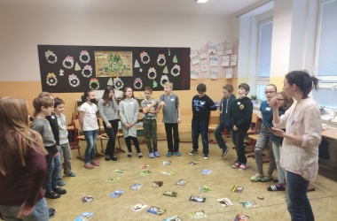Začalo to tím, že jsme si nalepili na trička nálepky se jmény. Paní lektorka nám vyprávěla příběh o týmu, který plul na neobjevený ostrov. Poté začala první společná hra, ve které jsme se učili, co je důvěra. Ve druhé hře jsme museli naplánovat dobrou taktiku, aby náš tým v určeném čase posbíral všechny karty. I další hra byla o taktice a také o úctě, laskavosti, odvaze a všímavosti. V závěru programu se nám podařilo rozluštit šifru – odmítej zlo, čiň dobro, vyhledávej pokoj a usiluj o něj. Všechny tyto hry nás ale naučily jedno – pracovat jako tým a vždy táhnout za jeden provaz.