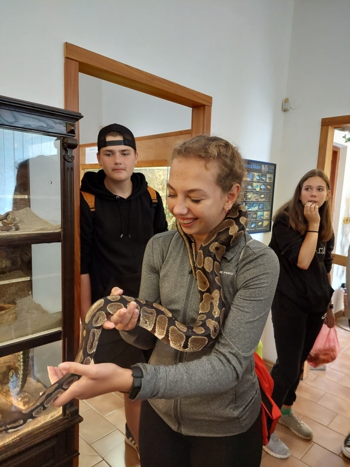 Zavítali i do jeskyně Šipka, kde byly nalezeny spodní čelisti neandrtálského dítěte, tzv. Šipecké čelisti. Navštívili tamní pekárnu na Štramberské uši a také se posadili za hrnčířský kruh, kde si vyzkoušeli práci s hlínou. Nadšený chovatel a cestovatel Marek Jeřábek jim poutavým výkladem představil rozmanité druhy tropických ryb, exotických hadů a ještěrů. Exkurzi jsem si skvěle užili.