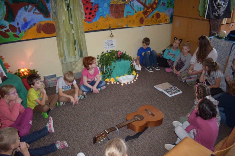 Rozloučili jsme se POZDRAVEM SLUNCI a s dobrým pocitem na srdíčku jsme pokračovali v tradičním školním dnu.
