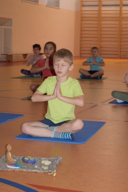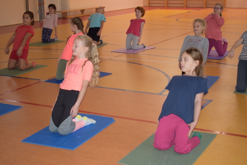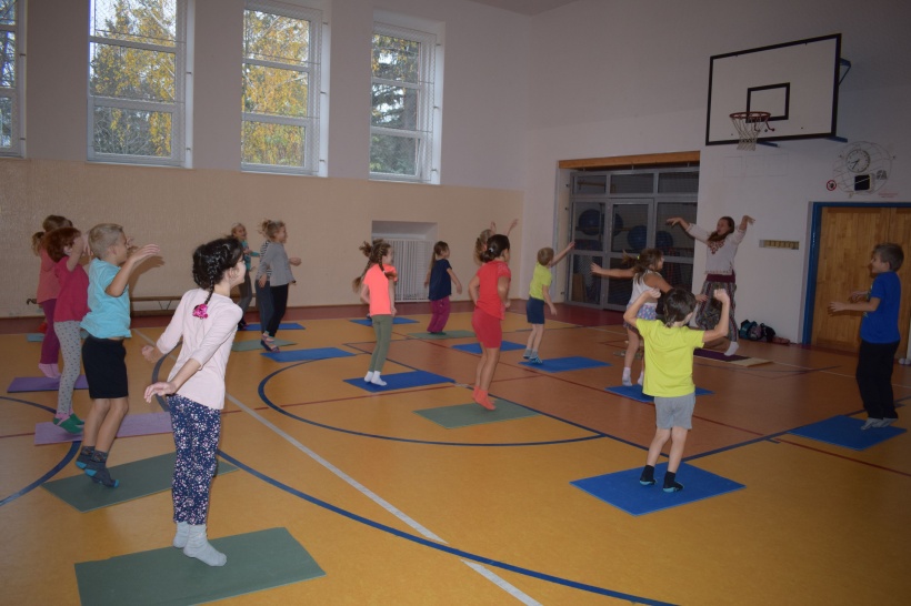 Děti si vyzkoušely jógové ásany, které představují různá zvířátka. Každou pozici jsme prožili a prodýchali.