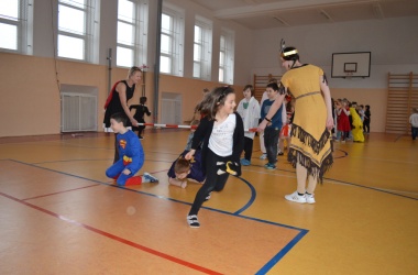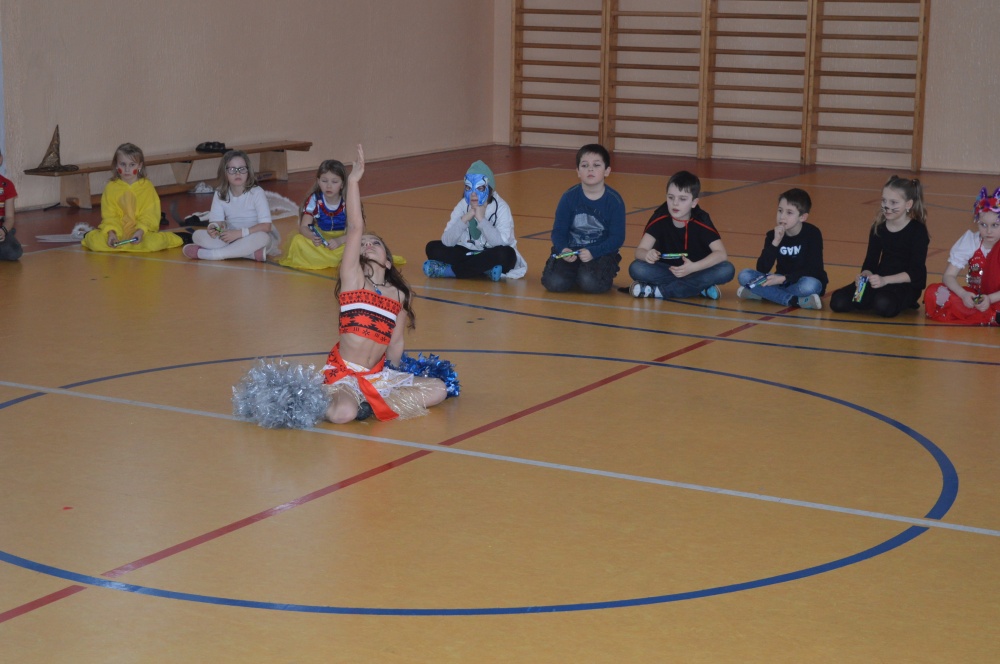 A jak už to na takovém pořádném plese chodí, nechybělo i malé překvapení. Postarala se o něj žákyně naší školy Klára Soukupová, a to ukázkou mažoretkového sportu. Po krásném vystoupení následovala promenáda masek. O originální kostýmy nebyla nouze. Děti se předvedly ve vší parádě a právem si odnesly malou sladkou odměnu.