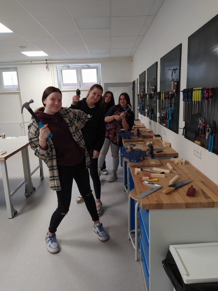 Vyzkoušeli jsme si svou manuální zručnost při výrobě dřevěného výrobku, dekorování triček nebo programování CNC strojů. Snad tento den některým z nás pomůže při výběru střední školy.