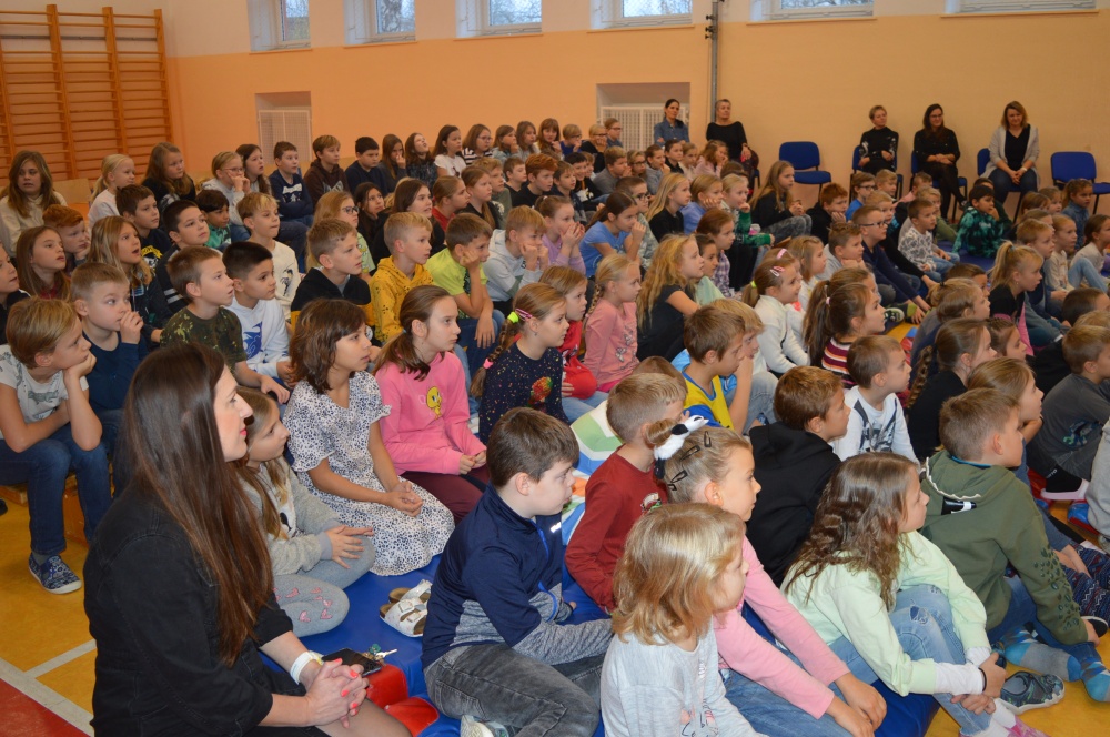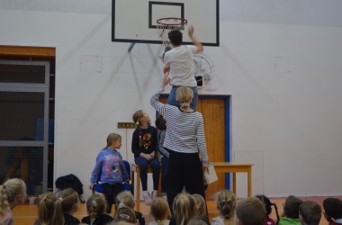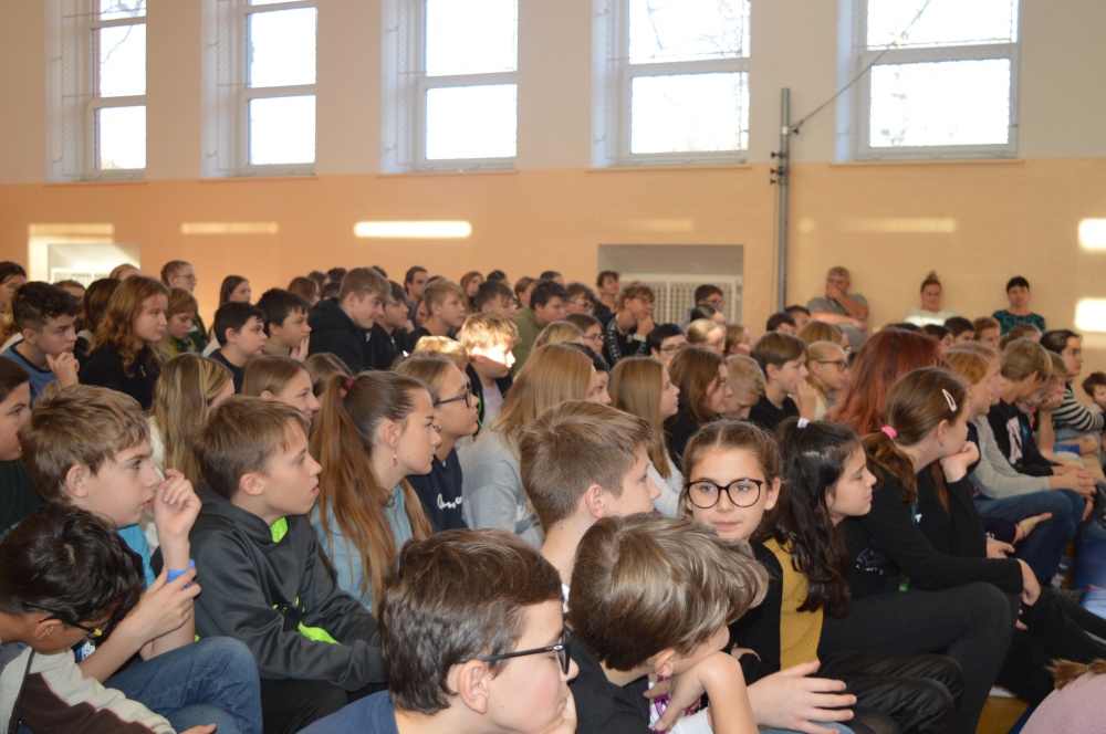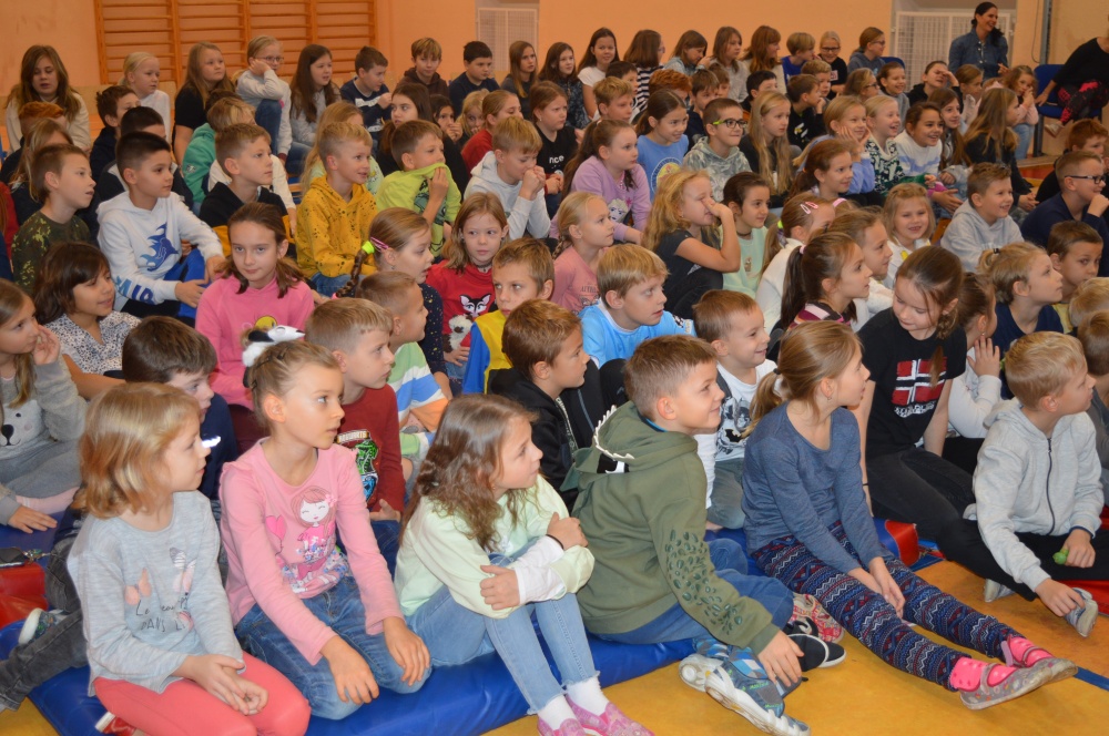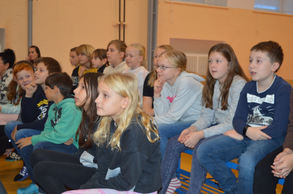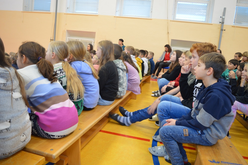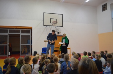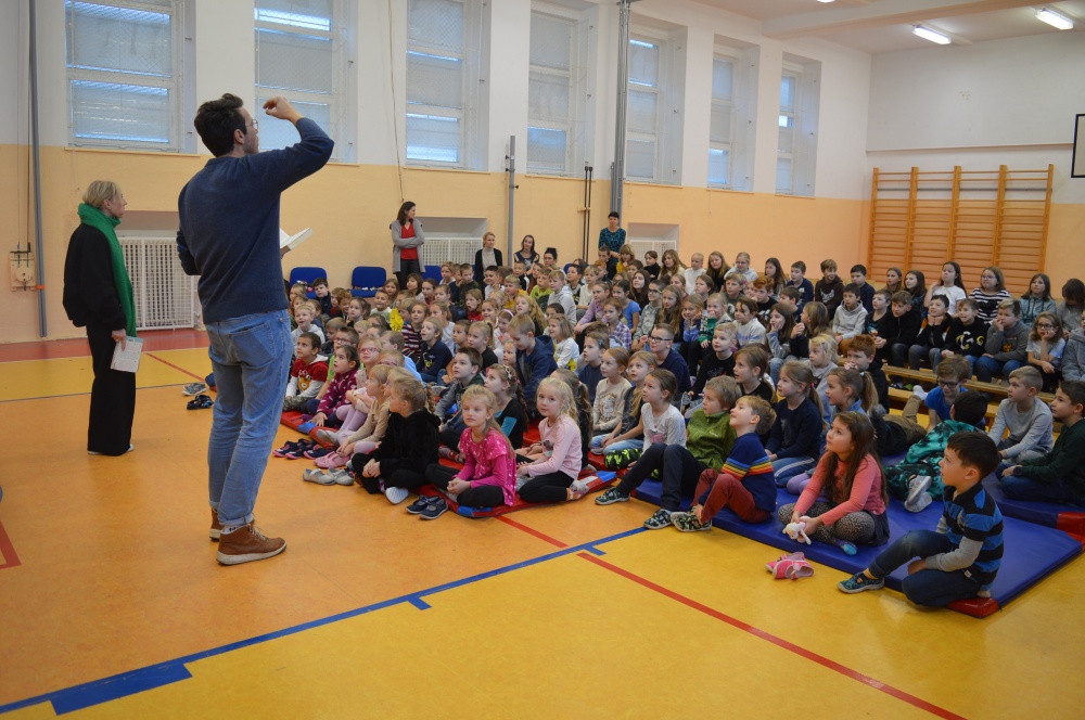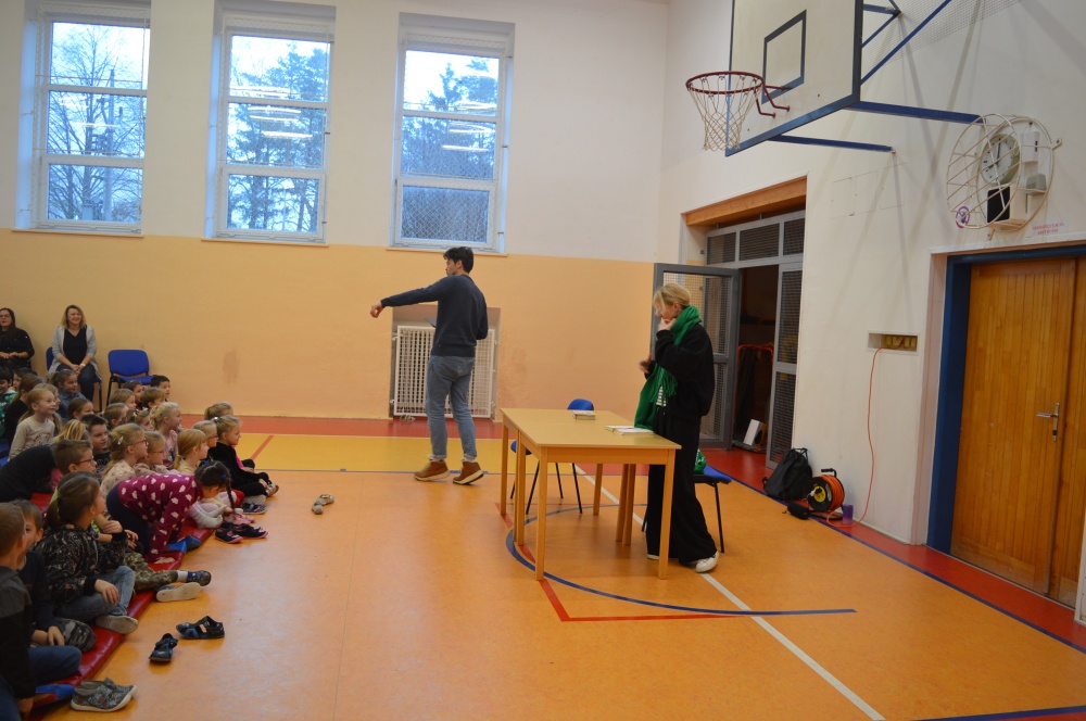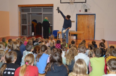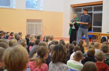 Děti z prvního stupně zhlédly představení Šmodrcha, ve kterém herci představili s knihou v ruce příběh o Honzíkovi a mluvícím kocourovi. Žáci z druhého stupně viděli moderně zpracovaný titul Jak být holkou/Jak být klukem o problémech dospívání.