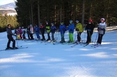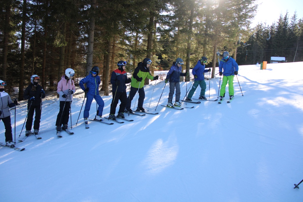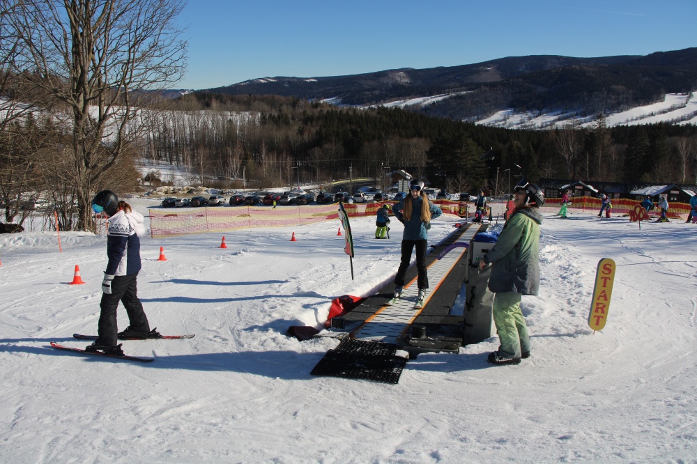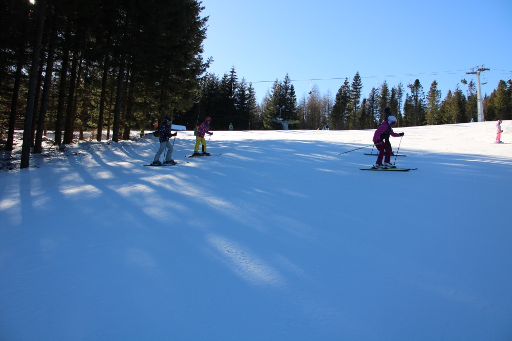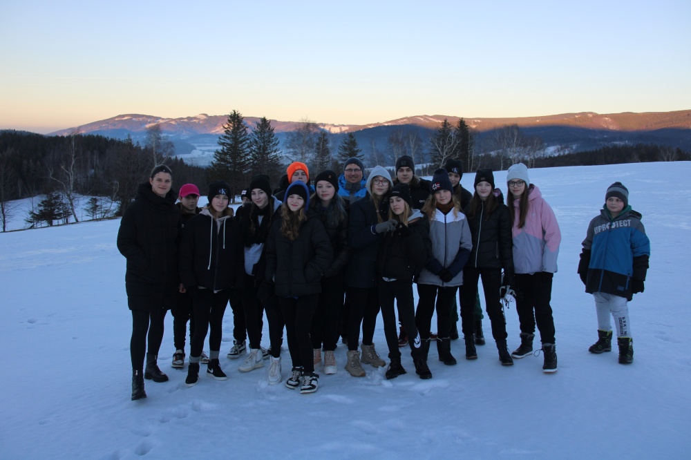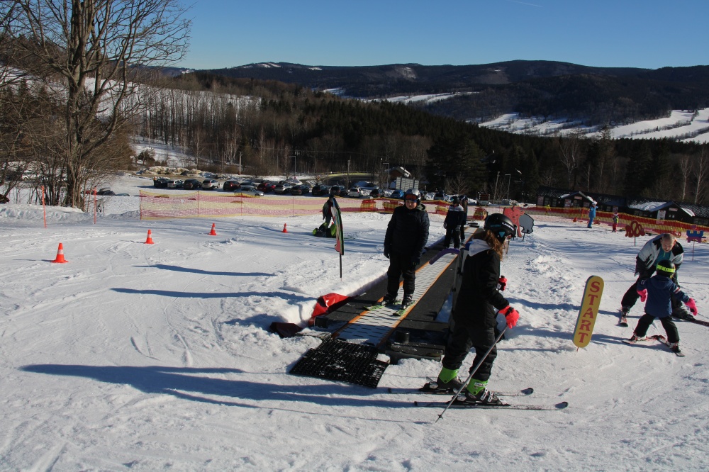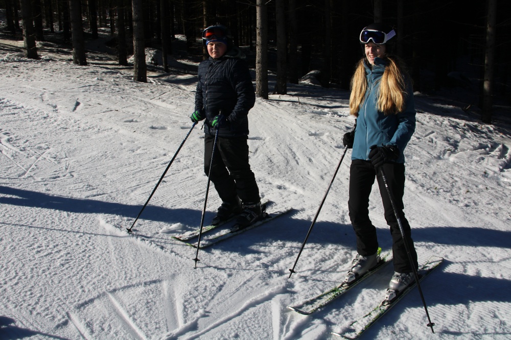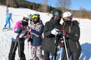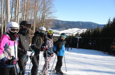 A tak se i žáci ze sedmých a osmých tříd naší školy vydali do hor - zúčastnili se lyžařského výcvikového kurzu ve Filipovicích v Jeseníkách. Nejenže jsme si všichni báječně zalyžovali, zdokonalili se i v metodice, ale také si užili spoustu legrace během našeho nabitého programu. Ten byl zpestřen návštěvou hotelového bazénu, přednáškami, večerním lyžováním, společnými večerními hrami, závodem ve slalomu, výrobou odznáčků, cukrovou vatou, kinem s popkornem či rozlučkovou párty. Rozhodně jsme se nenudili. Přesto, že nám zpočátku počasí moc nepřálo, hodili jsme to za hlavu s rozcvičkovou básní Leze žába po žebříku, natahuje elektriku, nejde to, nejde to, necháme to…na léto! Na fotkách níže můžete vidět, že i sluníčko jsme tím rozesmáli a probudili :).