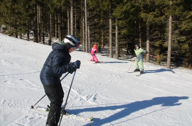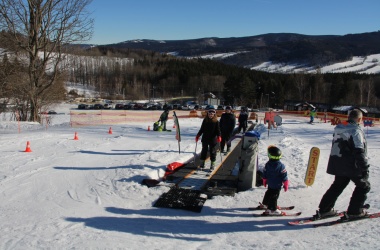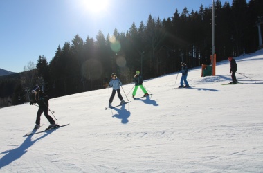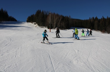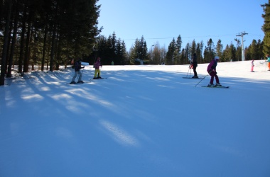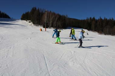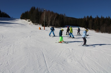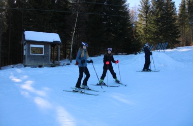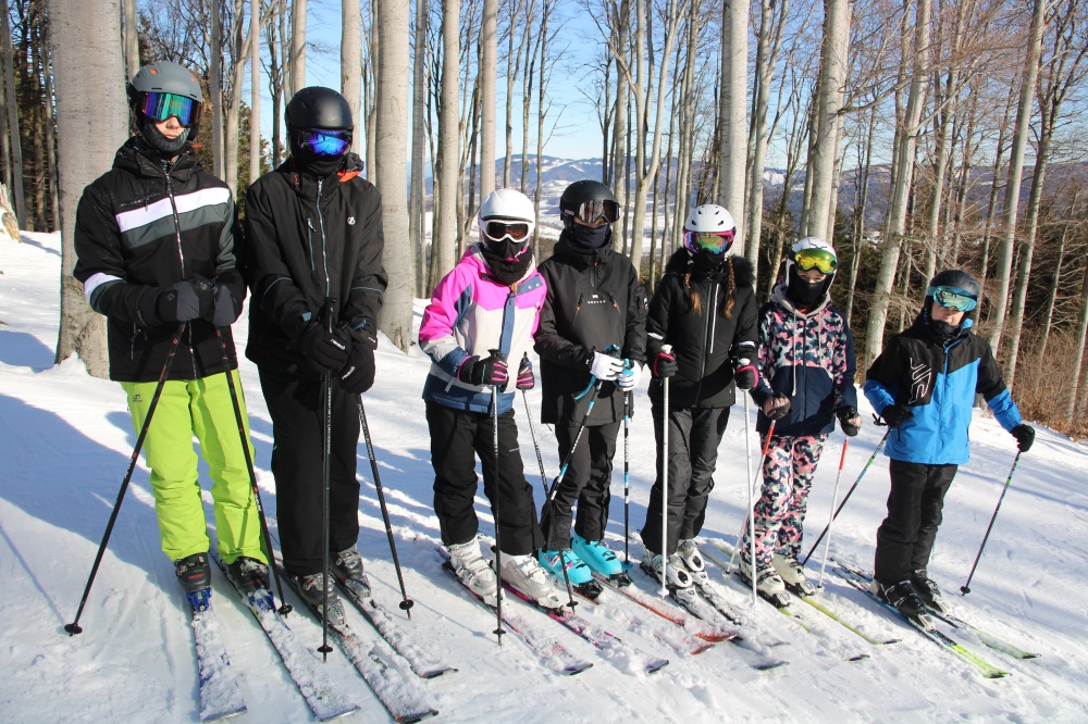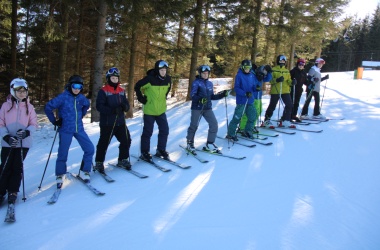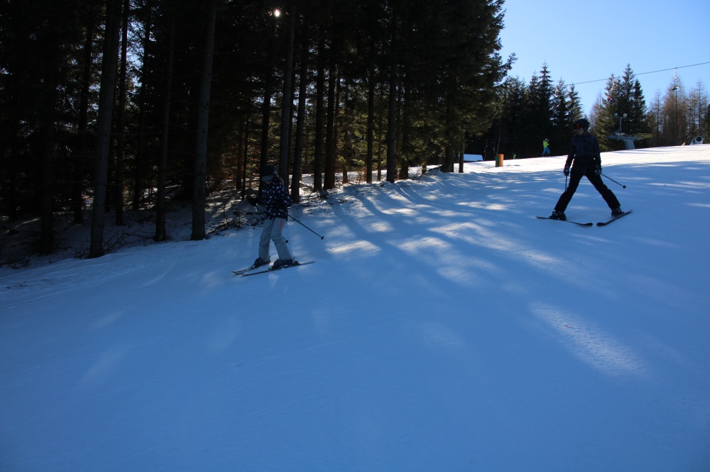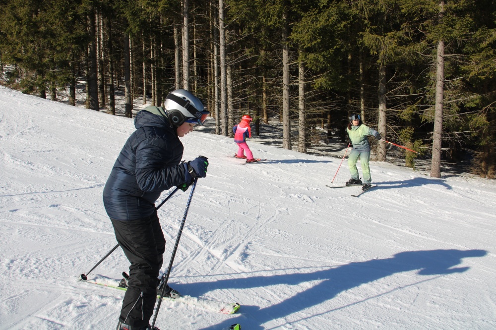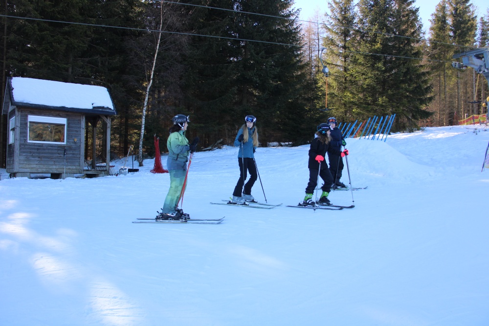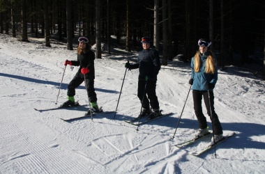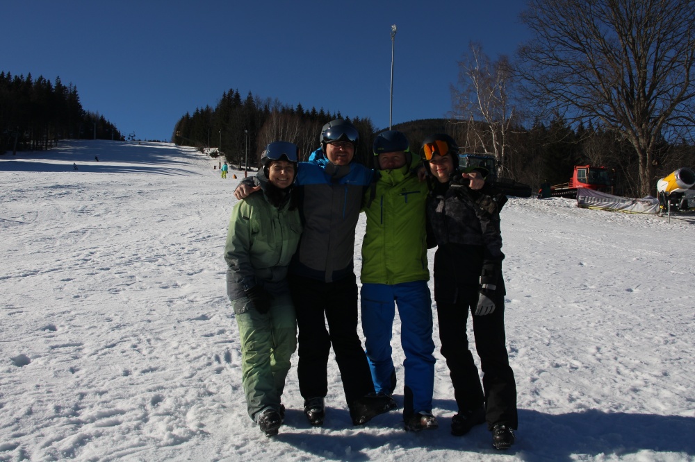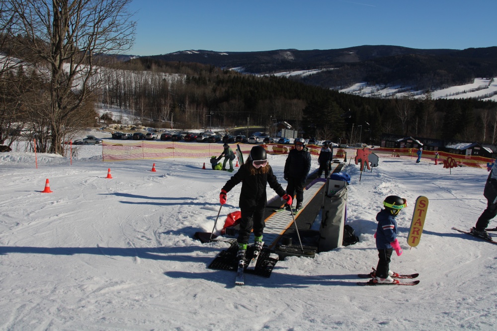 A tak se i žáci ze sedmých a osmých tříd naší školy vydali do hor - zúčastnili se lyžařského výcvikového kurzu ve Filipovicích v Jeseníkách. Nejenže jsme si všichni báječně zalyžovali, zdokonalili se i v metodice, ale také si užili spoustu legrace během našeho nabitého programu. Ten byl zpestřen návštěvou hotelového bazénu, přednáškami, večerním lyžováním, společnými večerními hrami, závodem ve slalomu, výrobou odznáčků, cukrovou vatou, kinem s popkornem či rozlučkovou párty. Rozhodně jsme se nenudili. Přesto, že nám zpočátku počasí moc nepřálo, hodili jsme to za hlavu s rozcvičkovou básní Leze žába po žebříku, natahuje elektriku, nejde to, nejde to, necháme to…na léto! Na fotkách níže můžete vidět, že i sluníčko jsme tím rozesmáli a probudili :).