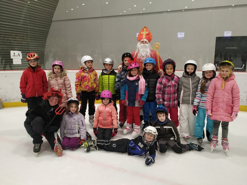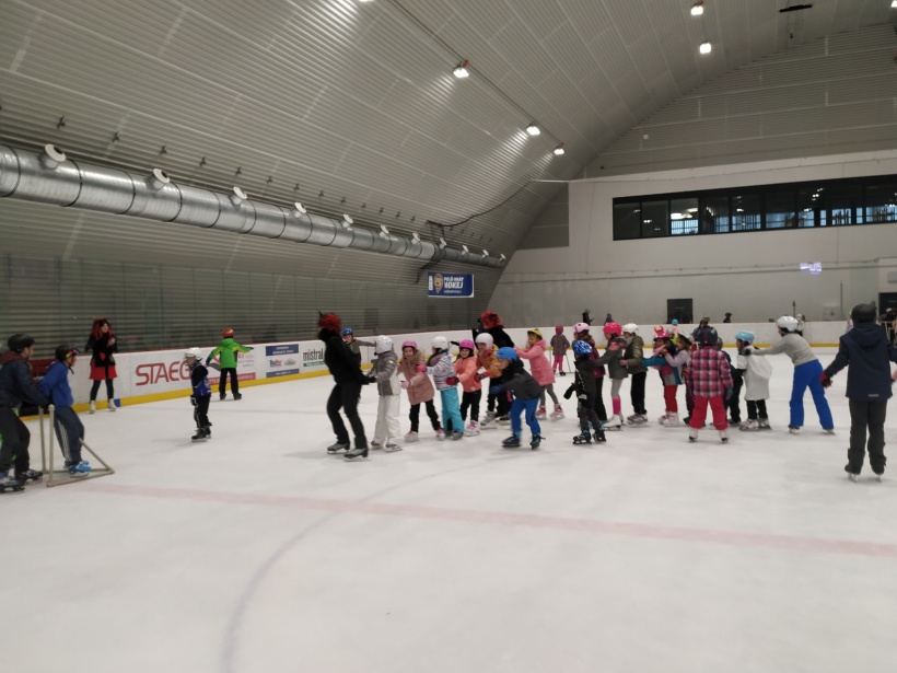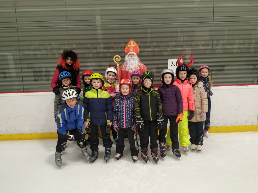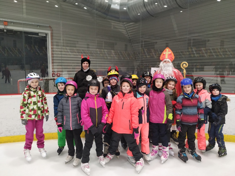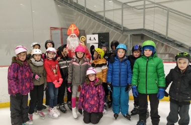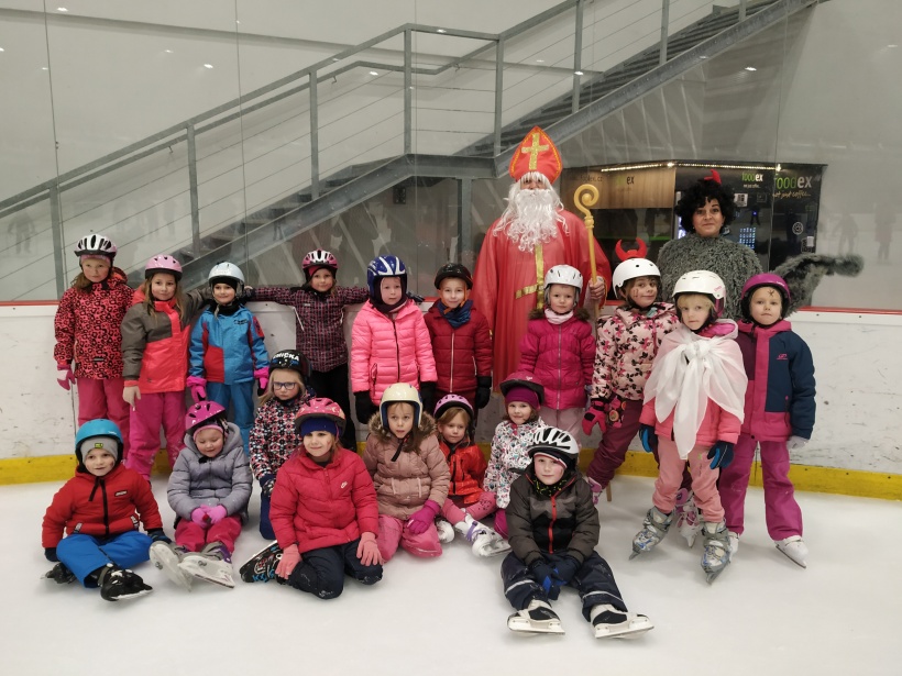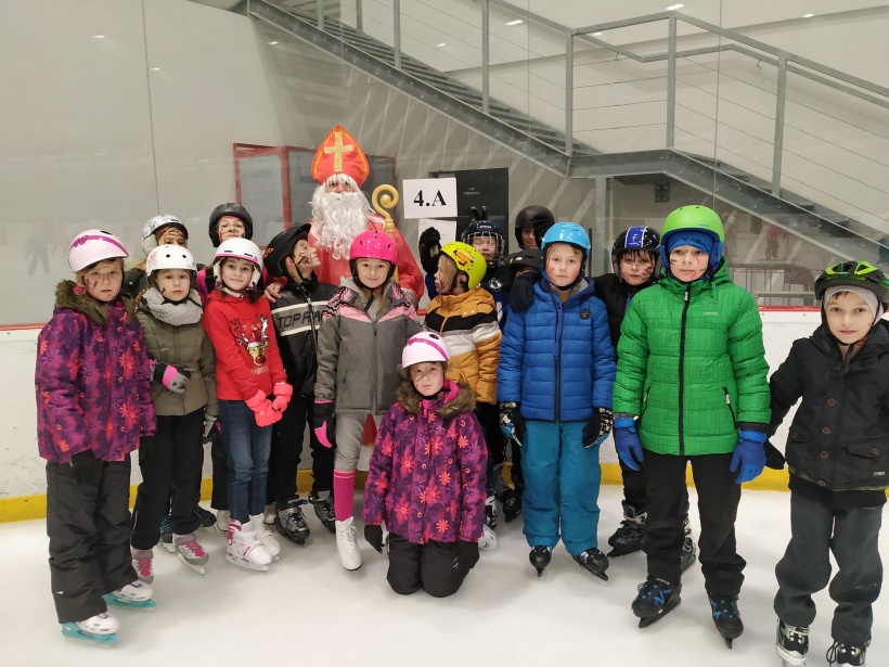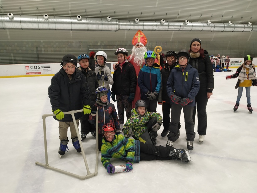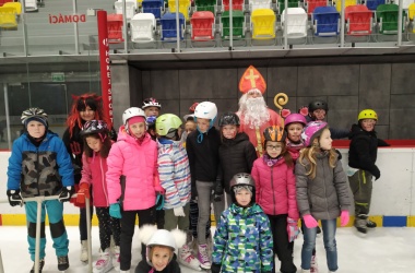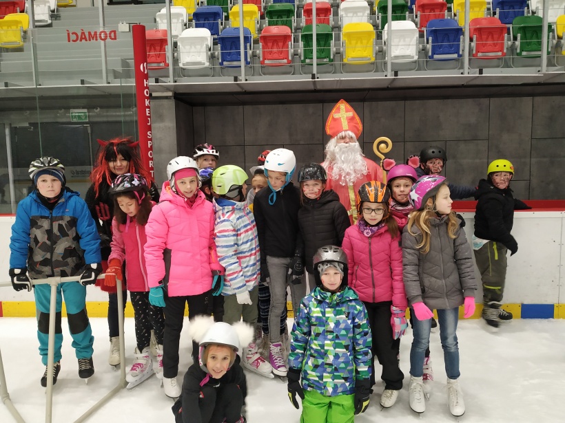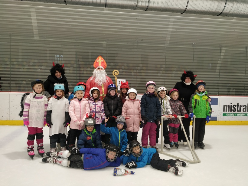 Děti z prvního stupně pokračovaly v zábavném programu na zimním stadionu ve Vyškově, kde plnily zajímavé úkoly. Atmosféru umocňovala vánoční hudba. Náhle se setmělo a na led přibruslil Mikuláš s bohatou nadílkou…