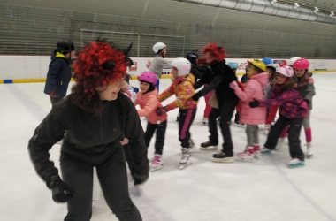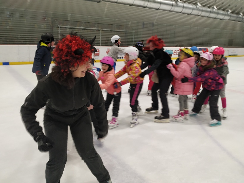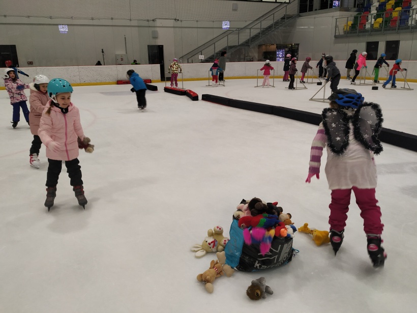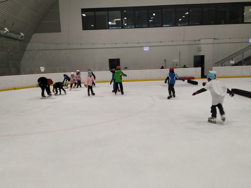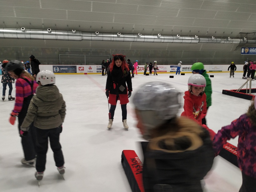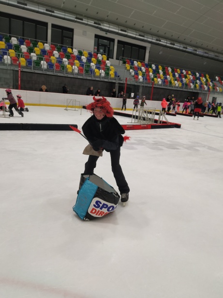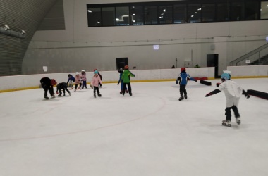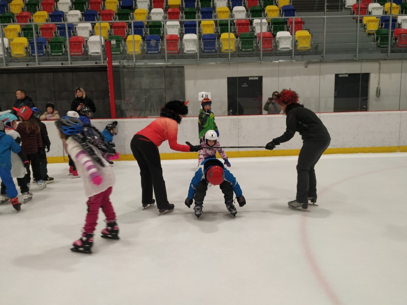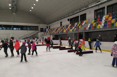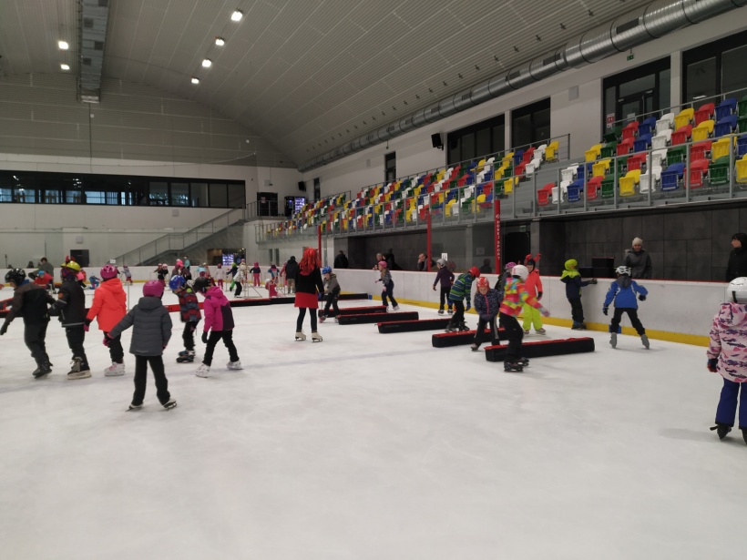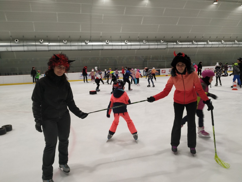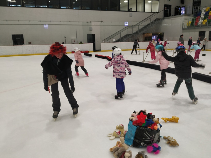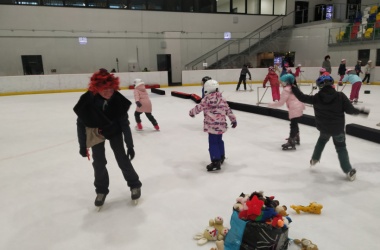Děti z prvního stupně pokračovaly v zábavném programu na zimním stadionu ve Vyškově, kde plnily zajímavé úkoly. Atmosféru umocňovala vánoční hudba. Náhle se setmělo a na led přibruslil Mikuláš s bohatou nadílkou…