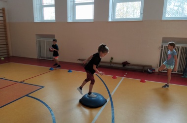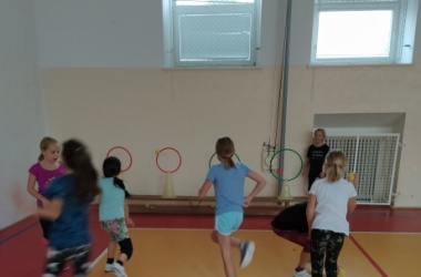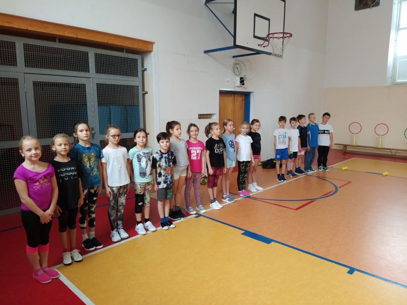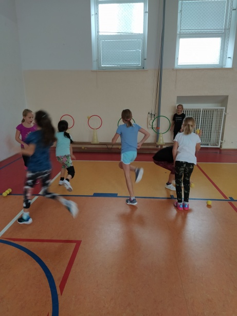 Žáci třetího ročníku pozvali děti z MŠ do své hodiny tělesné výchovy. Děvčata se ujala rozcvičky, při které se všichni protáhli a zároveň pozdravili sluníčko.