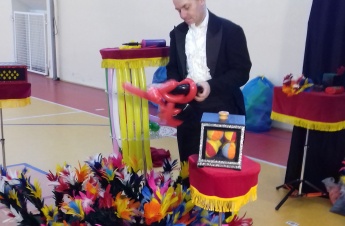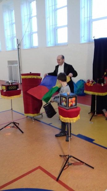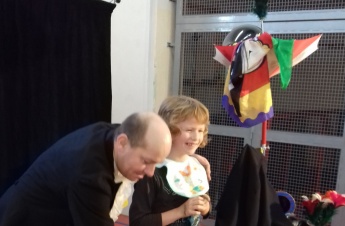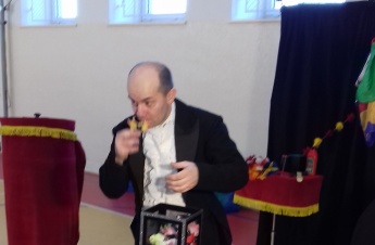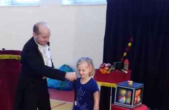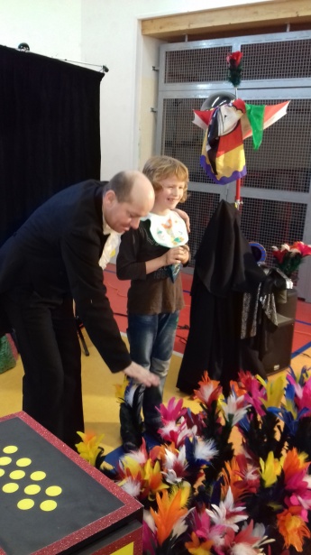 Na vlastní oči mohly vidět, jak se z prázdného klobouku tahají barevné šátky, jak se hůlka promění v kytici květů, jak létají karty a náhle zmizí, a spoustu dalších záhad. Pan kouzelník také požádal některé děti o spolupráci, za což je poté obdaroval balónkovým zvířátkem. Dokonce jednoho chlapce proměnil v králíka. Ale nebojte! Vše dobře dopadlo, byl to totiž jen kouzelnický trik!