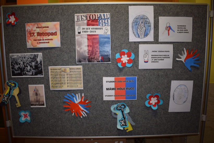 Oslavy státního svátku Dne boje za svobodu a demokracii se dotknuly žáků prvního i druhého stupně. Společně jsme si celý týden ve vlastivědě, dějepise a výchově k občanství připomínali historii nejen tohoto dne, ale i další související události.