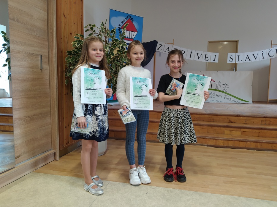 V dubnu reprezentovali naši žáci školu v pěvecké soutěži Zazpívej, slavíčku.