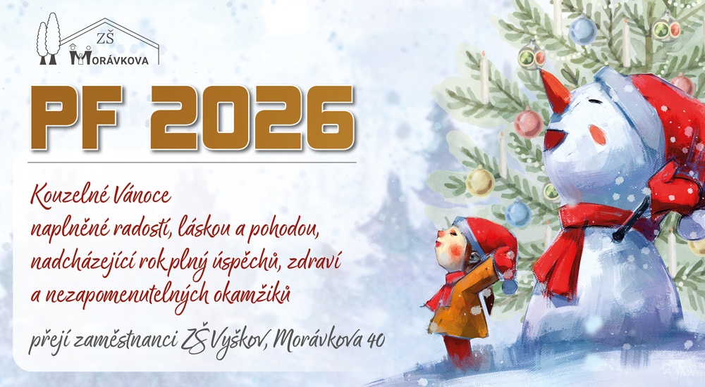Vážení rodiče, učitelé, děti a přátelé školy, děkujeme za Vaši přízeň v letošním roce, přejeme Vám klidné prožití vánočních svátků, úspěšný vstup do nového roku a těšíme se na Vás i v roce 2026.
