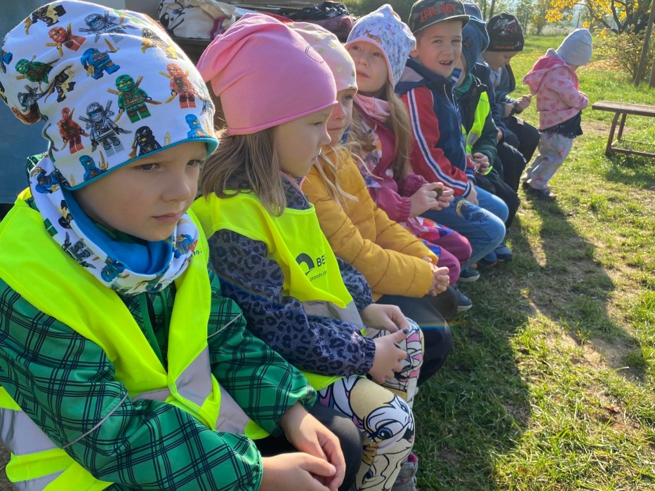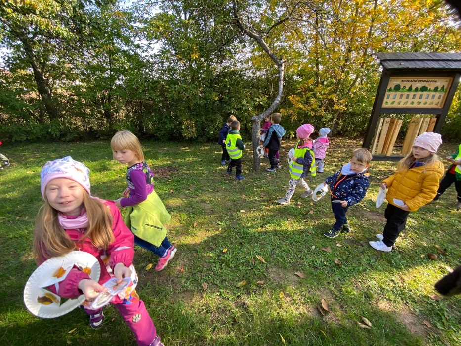 Pod vedením paní učitelky Petry Božekové si děti vyrobily podzimní čepici, našly ukrytá zvířátka, a dokonce se vydováděly v barevném podzimním listí. Poslechem zvuků zvířat se všichni rozloučili a popřáli si krásný zbytek dne.