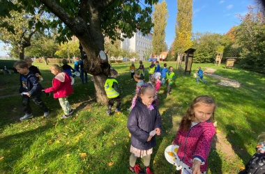 Úterní říjnové dopoledne plné podzimu a zvířátek si společně užily děti z MŠ Šikulka a 1. B třídy ZŠ Morávkova na nové školní zahradě.