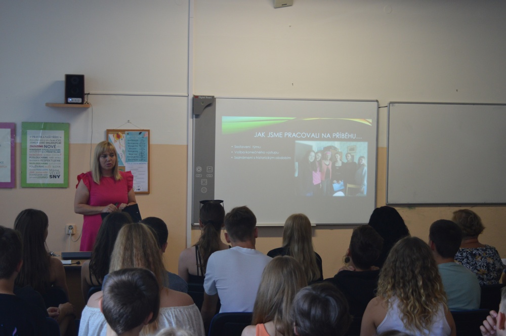 Naším úkolem bylo najít v okolí pamětníka, vyzpovídat ho a vzpomínky zpracovat do rozhlasové reportáže. Zaujal nás příběh paní Ireny Bláhové, která v době komunismu aktivně prosazovala demokracii a za zveřejnění článku v novinách byla potrestána ztrátou zaměstnání. Celou reportáž jsme následně zpracovaly v Českém rozhlase a při slavnostní prezentaci v Křišťálovém sále brněnské radnice získaly 1. místo.