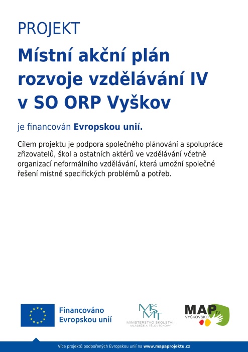 MAP IV Místní akční plán rozvoje vzdělávání IV v SO ORP Vyškov, registrační číslo: