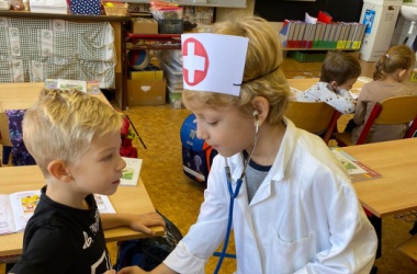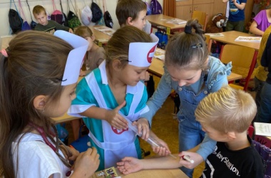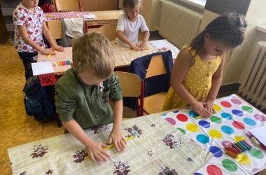 Písmenko O jsme moc Obdivovali, při písmenku S jsme zalezli jógovou kobrou do trávy nebo jsme si vymodelovali první plastelínové Sluníčko, bouchací písmenko B bylo slyšet při výrobě barevné Boty s tkaničkami nebo při tvoření mýdlových Bublin před školou, písmenko U se našlo v nejkrásnějším Účesu holčiček i kluků nebo při nádherném Úsměvu, který jsme si vyrobili z papíru a bavlnky a konečně písmenko A donesla MUDr. Anička Ananasová, která nás zároveň naučila spoustu nového ze zdravotnictví.
