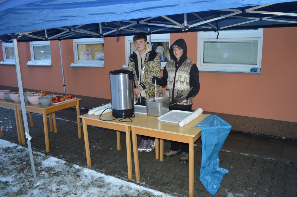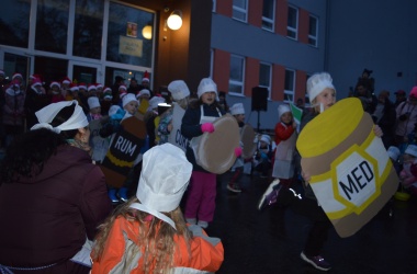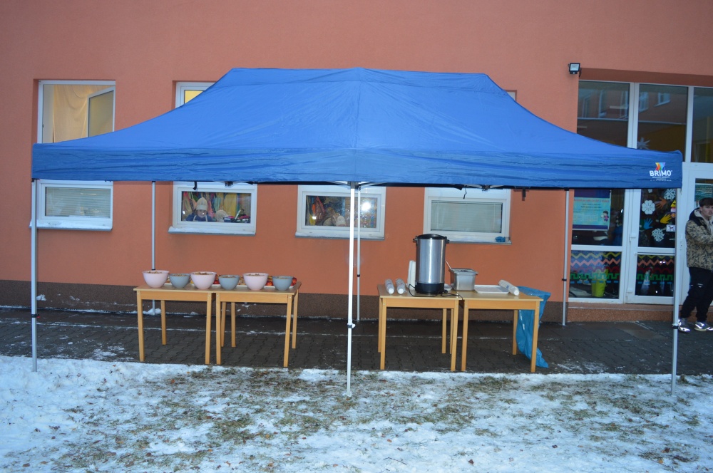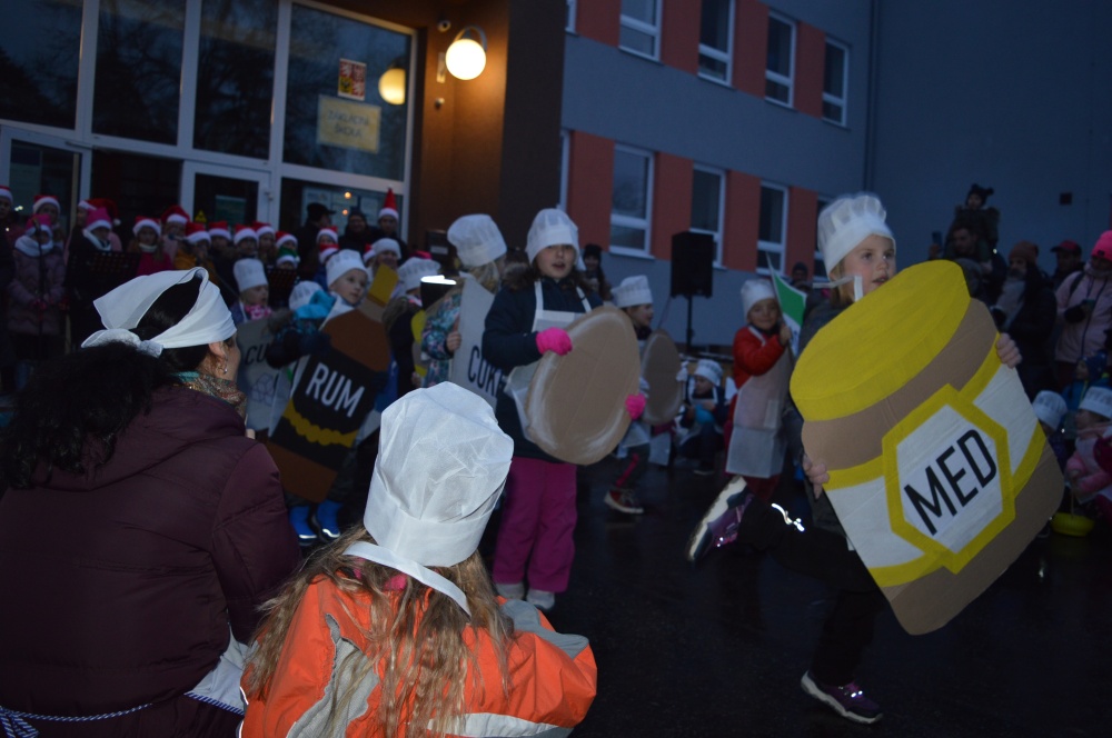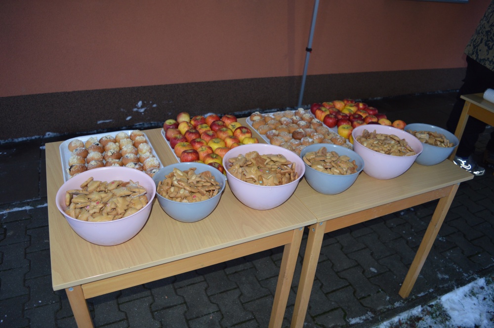 Zhlédli jsme vystoupení družiny, ochutnali perníky, vánoční cukroví, ovoce a horké nápoje podávané žáky 9. tříd.