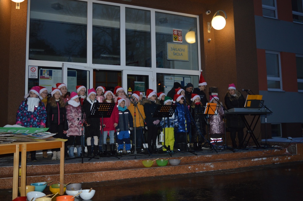 Vánoční atmosféru navodily koledy v podání žáků 1. i 2. stupně za doprovodu kláves paní učitelky Polákové.