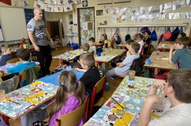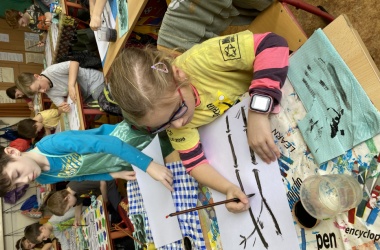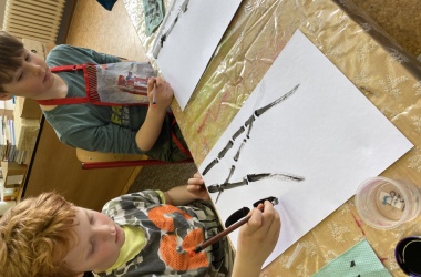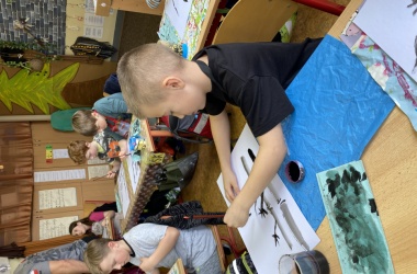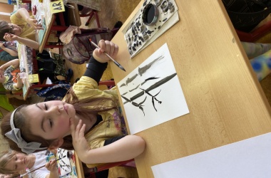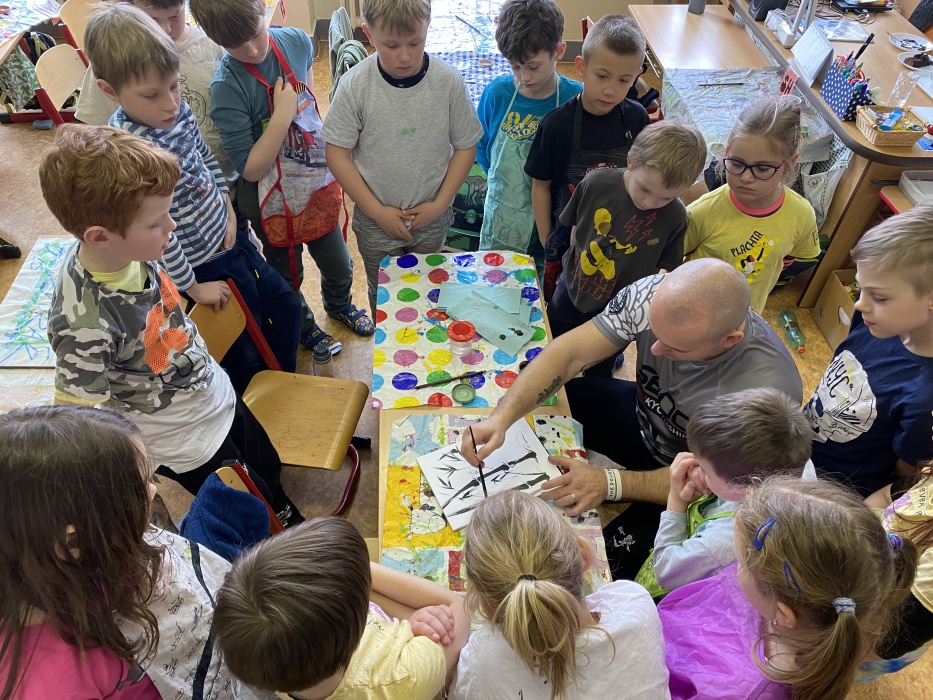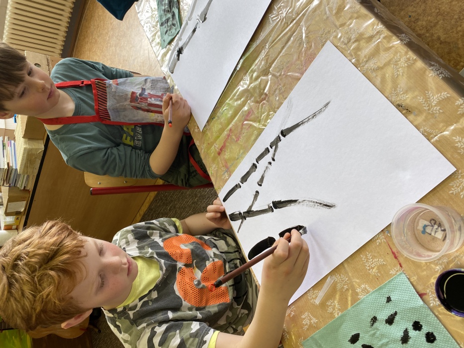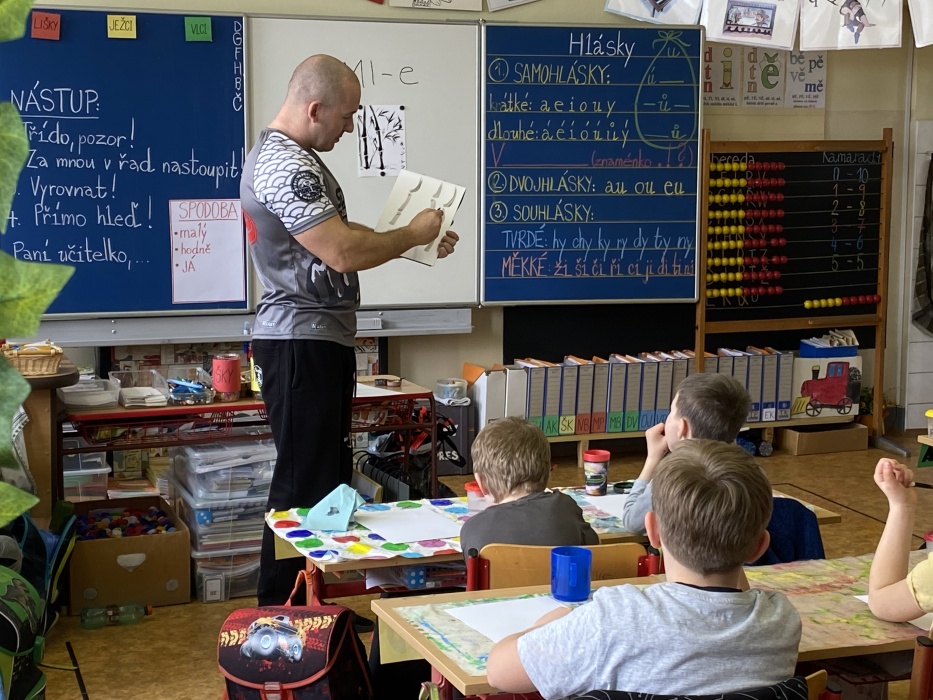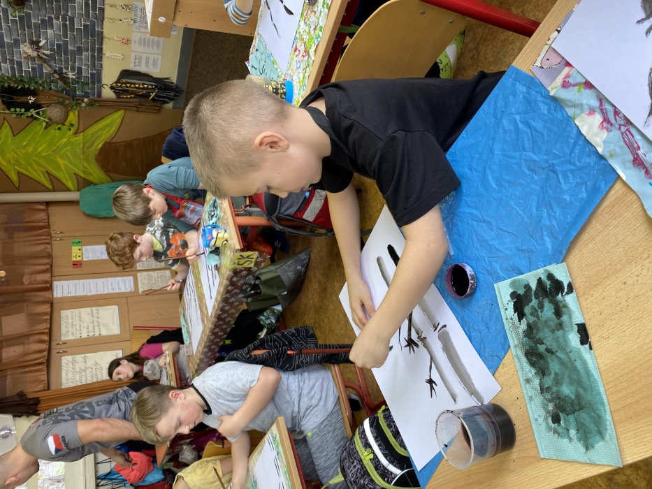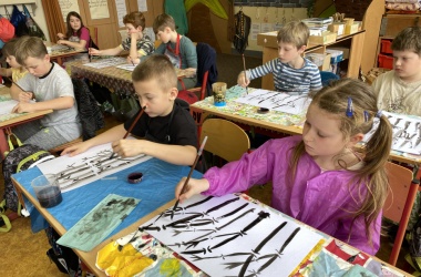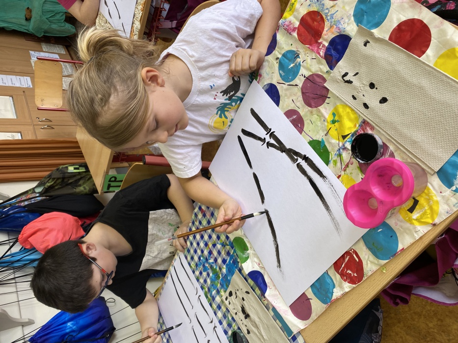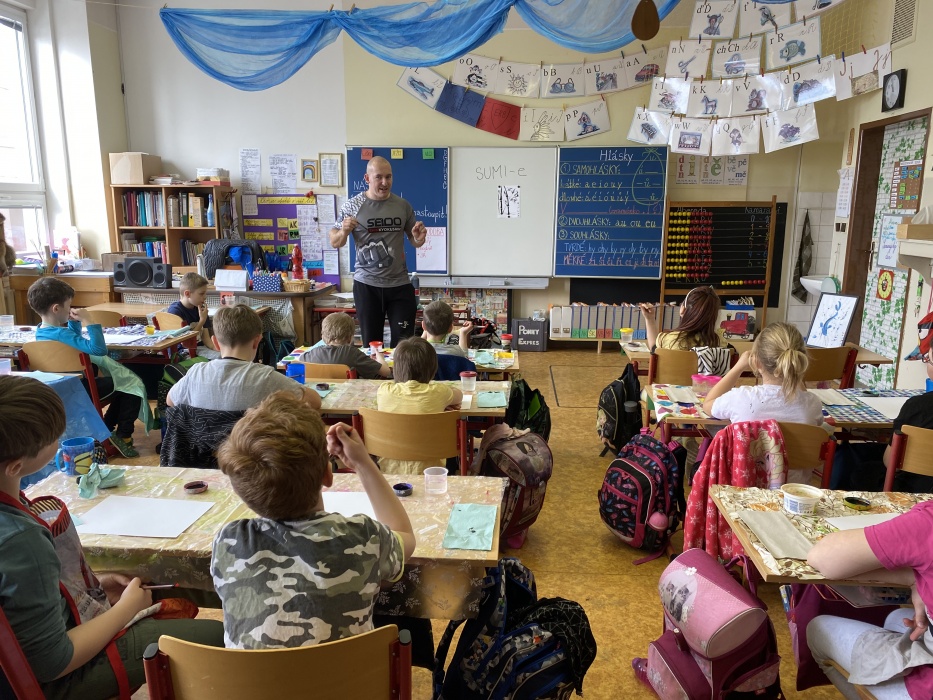 Ve druhé části dne jsem pro děti připravil výuku japonské malby tuší sumi-e a znovu mě čekalo příjemné překvapení, jak děti ke všemu přistupovaly. Předávat samurajské poselství širokému okolí je pro mě obrovskou výzvou a životním posláním! Ještě jednou děkuji paní učitelce Kateřině Gibalové, že mě pozvala a vše potřebné zařídila včetně kávy, výborného dortu a nečekaných darů.