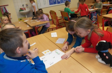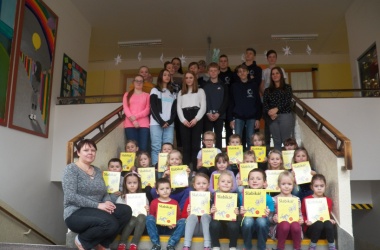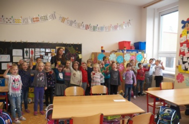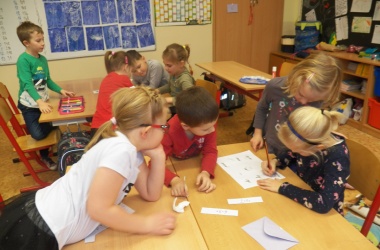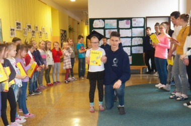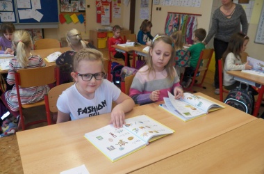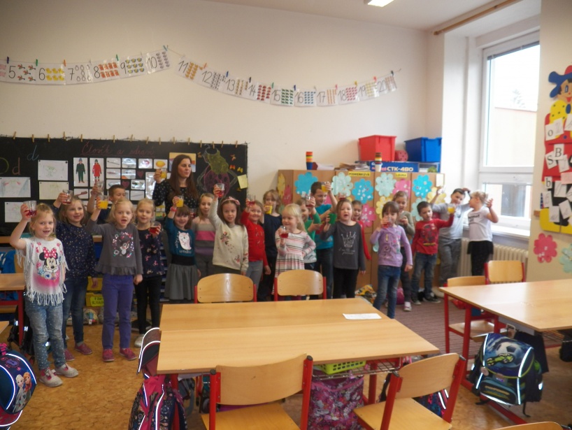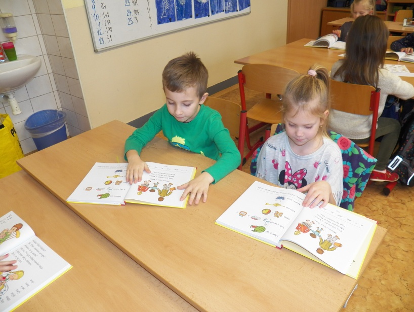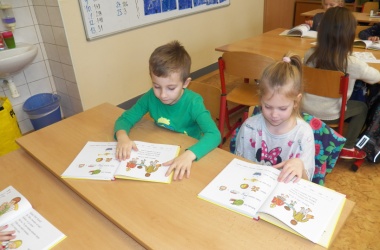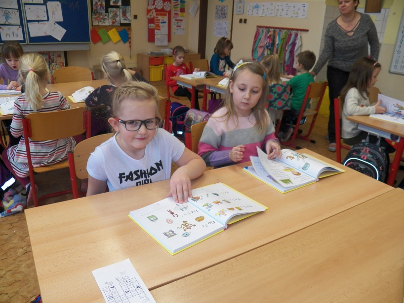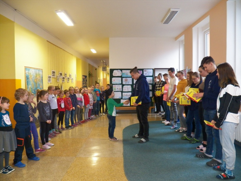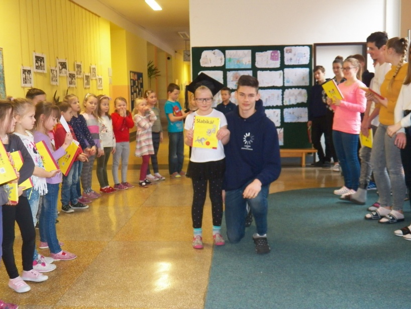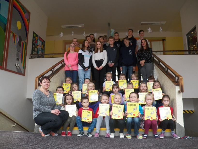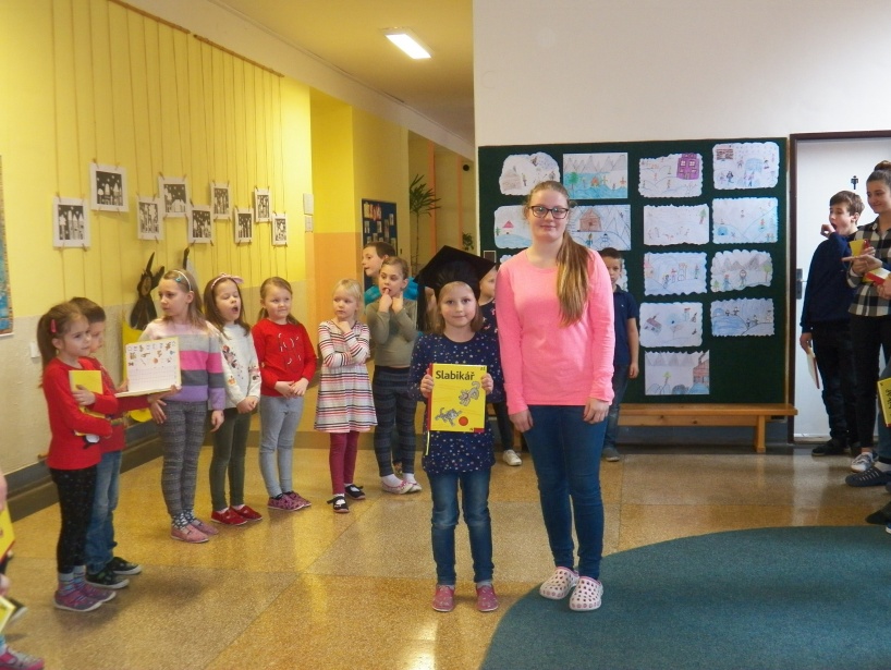 S předáváním nám pomáhali žáci 9. ročníku, kteří děti přivítali ve světě čtenářů. Na závěr jsme si Slabikáře prohlédli a kousek přečetli. Celý den jsme si užili a hezky oslavili.