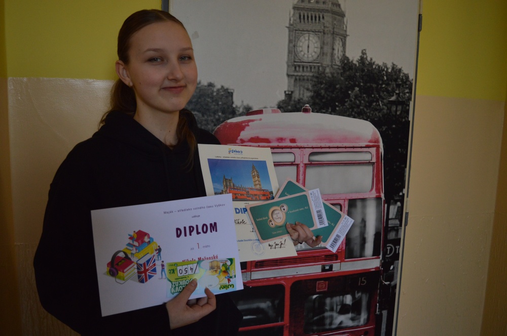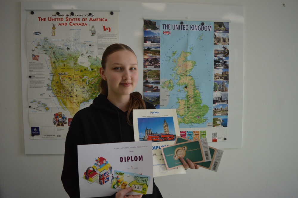 V okresním kole anglické olympiády naši školu reprezentovala žákyně 9. A Nikola Maženská. I přes velký počet soutěžících ve své kategorii zvítězila, a postoupila tak do krajského kola v Brně.