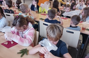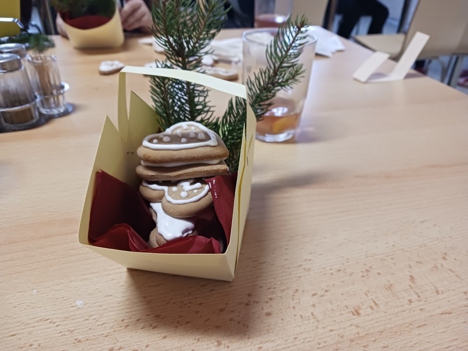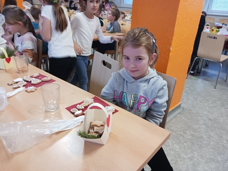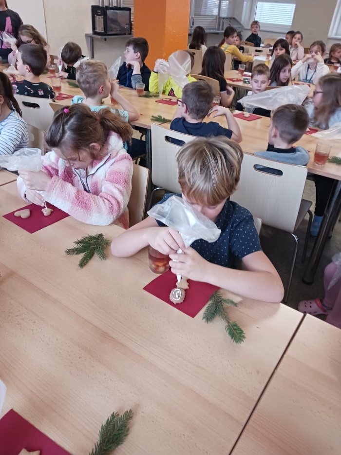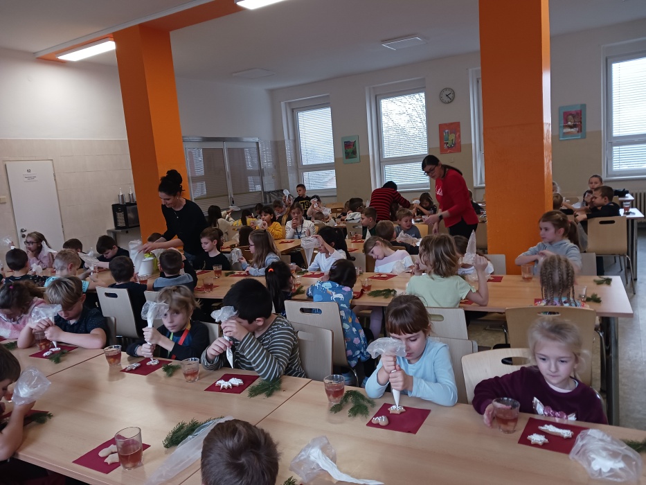 Děti si nazdobily perníčky, ty si odnesly domů ve vlastnoručně vyrobených košíčcích. Pro dotvoření vánoční atmosféry si k perníčkům přidaly i malou chvojku. Aby se dětem dařilo, nemohl chybět punč a tóny nejznámějších koled. Jak se dílo podařilo, můžete posoudit náhledem do fotogalerie.