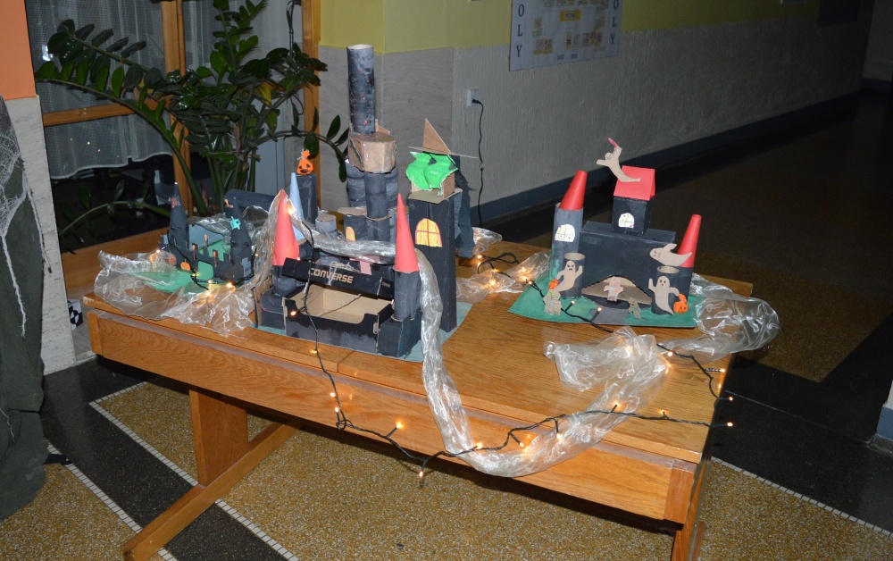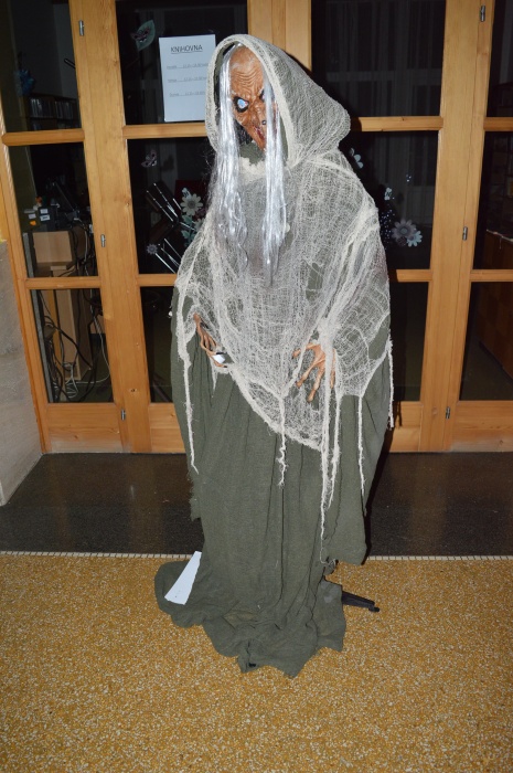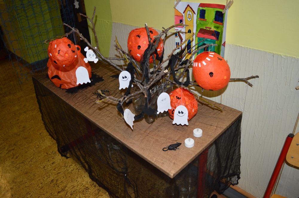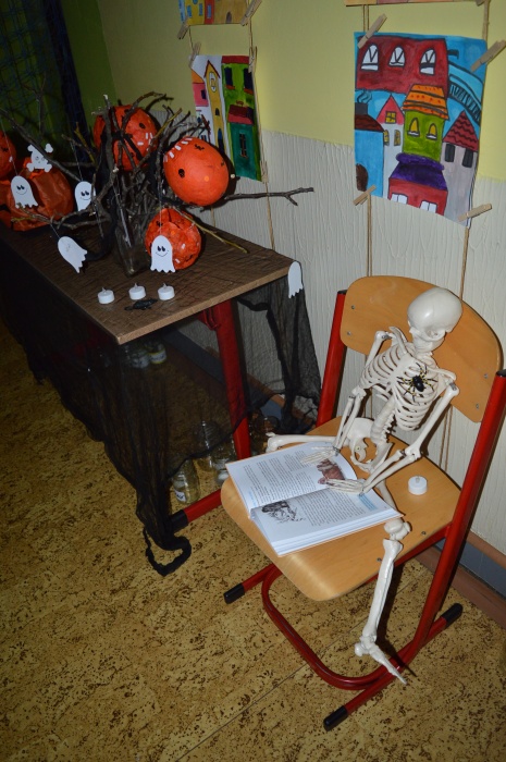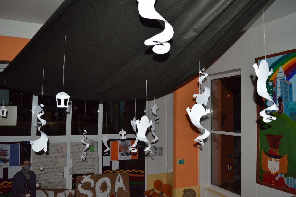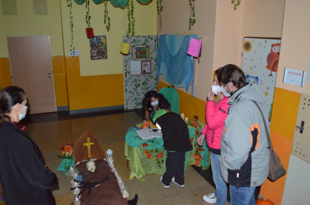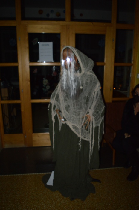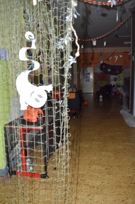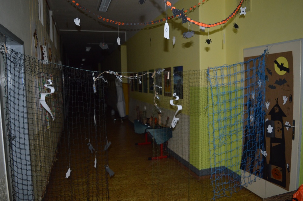 Potkali jsme nepočítaně strašidýlek a duchů. Občas se ze tmy zjevili netopýři, bludičky, pavouci a bílá paní, nechyběla ani ježibaba. Z krabic plných pilin, vaty nebo krupice či mouky jsme ve sklepení školy vytahovali různé potvůrky a hlodavce. Procházku zpestřilo stínové divadlo, žonglující klaun, zdáli jsme zaslechli strašidelné zvuky.