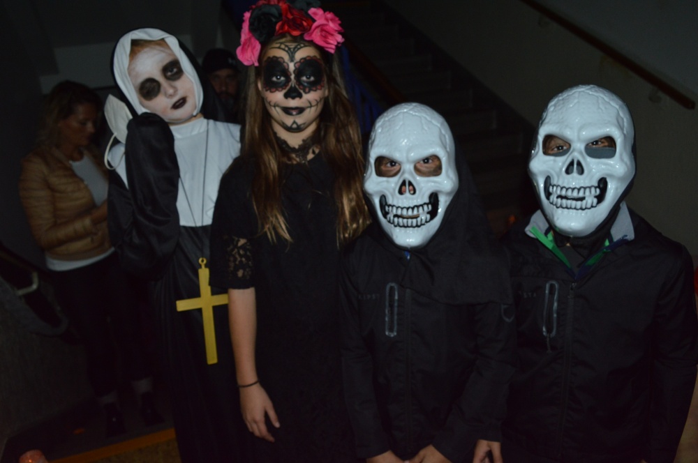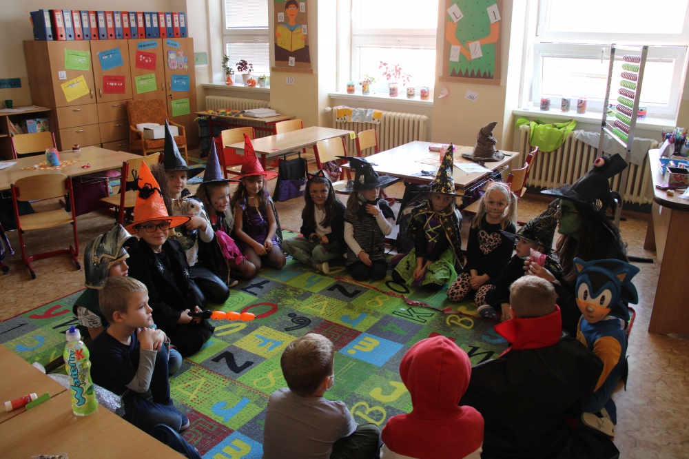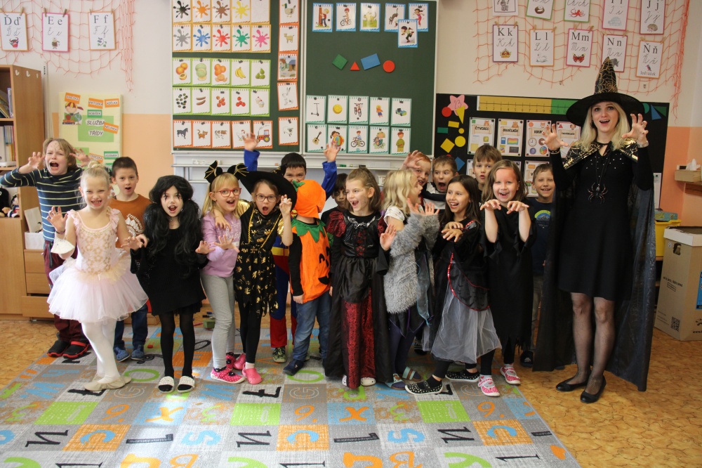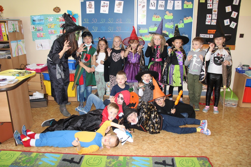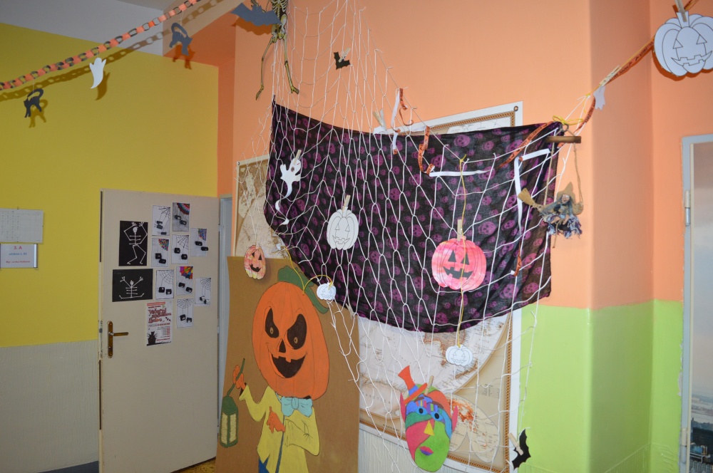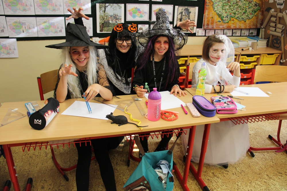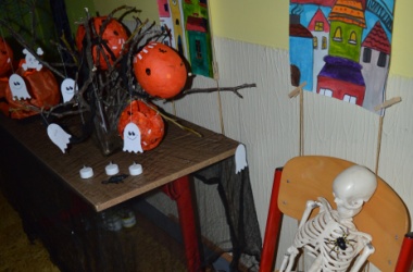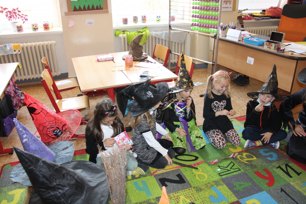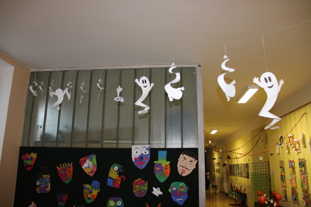 Potkali jsme nepočítaně strašidýlek a duchů. Občas se ze tmy zjevili netopýři, bludičky, pavouci a bílá paní, nechyběla ani ježibaba. Z krabic plných pilin, vaty nebo krupice či mouky jsme ve sklepení školy vytahovali různé potvůrky a hlodavce. Procházku zpestřilo stínové divadlo, žonglující klaun, zdáli jsme zaslechli strašidelné zvuky.