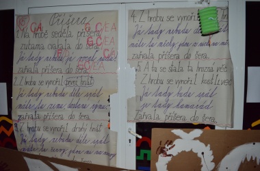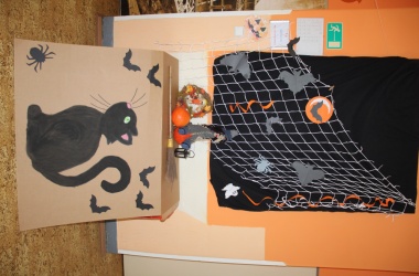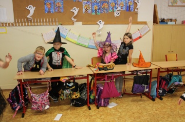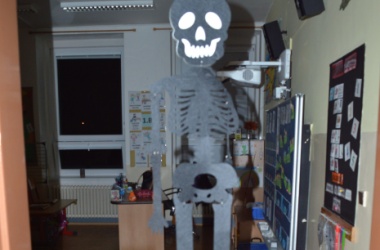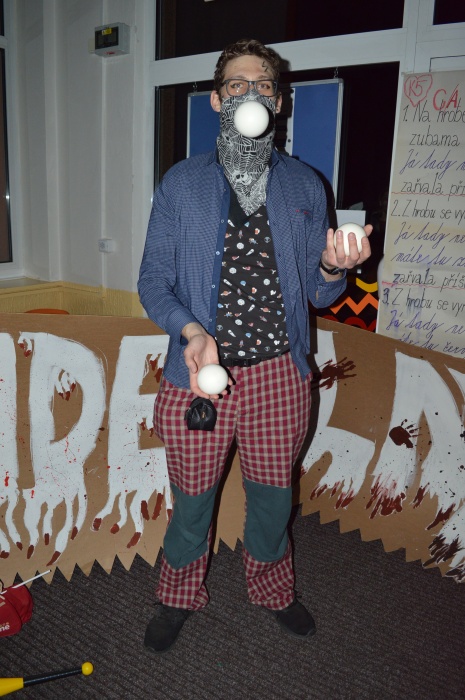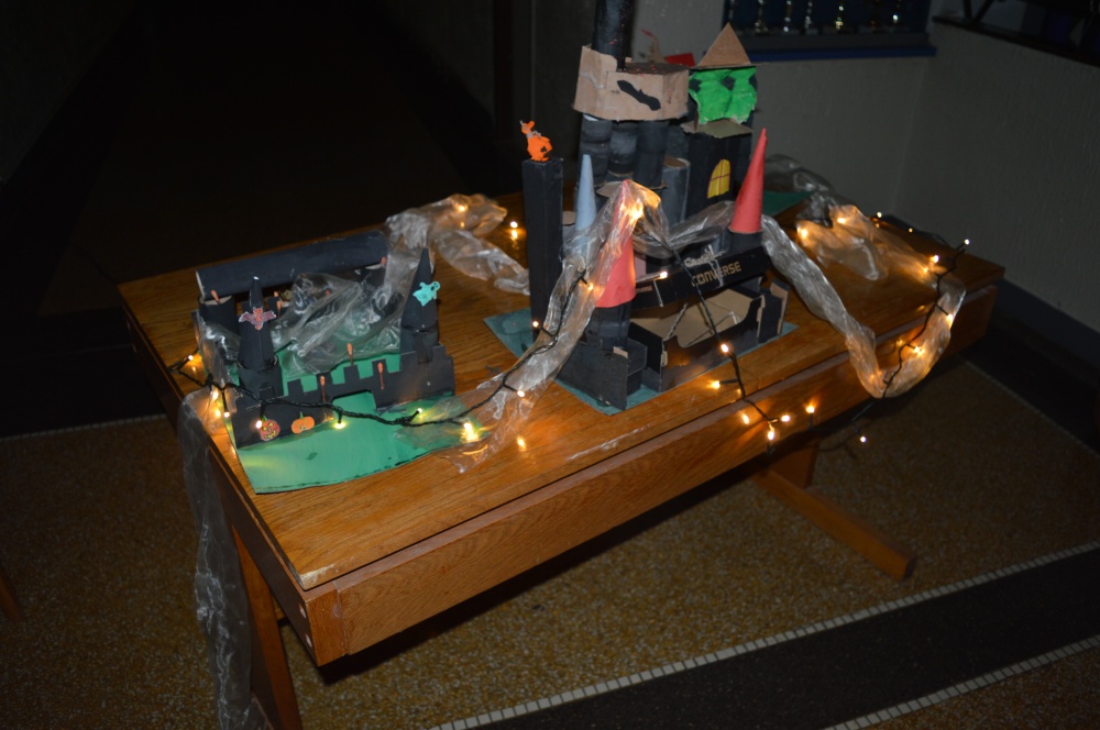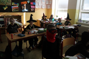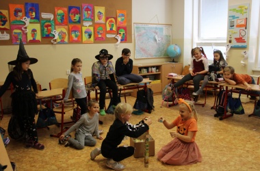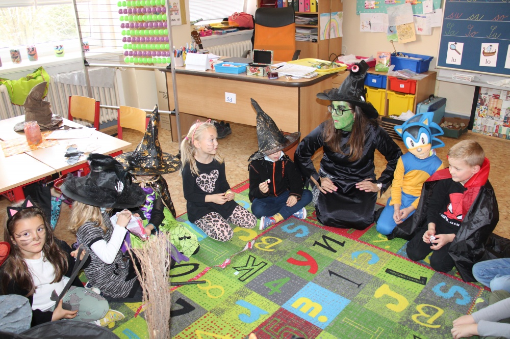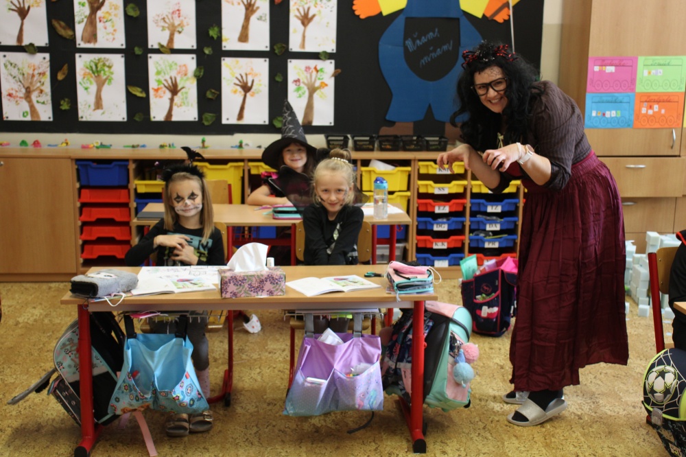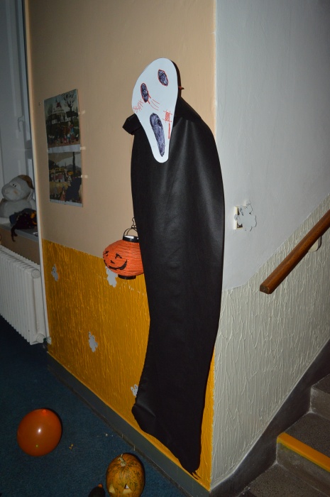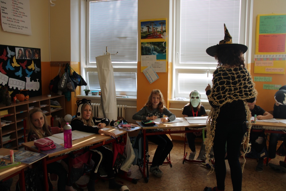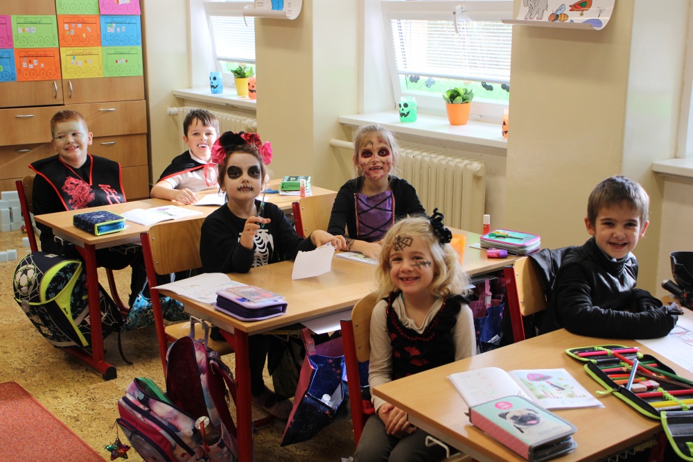 Potkali jsme nepočítaně strašidýlek a duchů. Občas se ze tmy zjevili netopýři, bludičky, pavouci a bílá paní, nechyběla ani ježibaba. Z krabic plných pilin, vaty nebo krupice či mouky jsme ve sklepení školy vytahovali různé potvůrky a hlodavce. Procházku zpestřilo stínové divadlo, žonglující klaun, zdáli jsme zaslechli strašidelné zvuky.