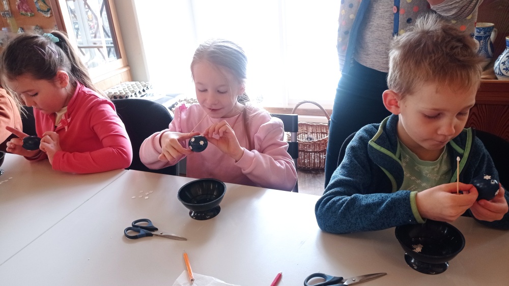 A na co se děti těšily nejvíc? Na dílničky! Ty jsou již tradičně součástí každé velikonoční výstavy. Všichni si z muzea odnesli kromě nových poznatků i krásné vlastnoručně nazdobené vajíčko.